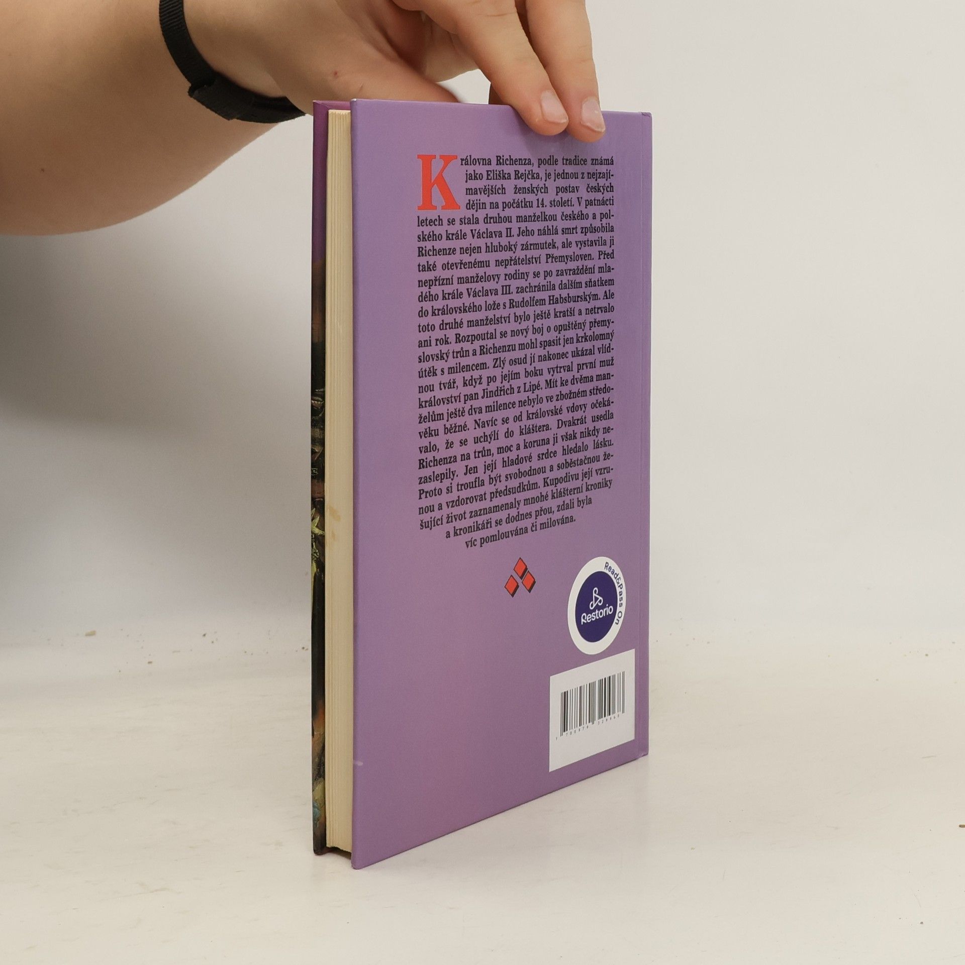 Královna Richenza. Hlavní postavou románu je královna Richenza, jedna z nejzajímavějších ženských postav českých dějin na počátku 14. století. Dvakrát usedla Richenza na trůn, moc a koruna ji však nikdy nezaslepily. Jen její hladové srdce hledalo lásku. Proto si troufla být svobodnou ženou a vzdorovat předsudkům, kterým může být vystavena i královna, jež nepřestala milovat kdysi prvního muže království, pana Jindřicha z Lipé.