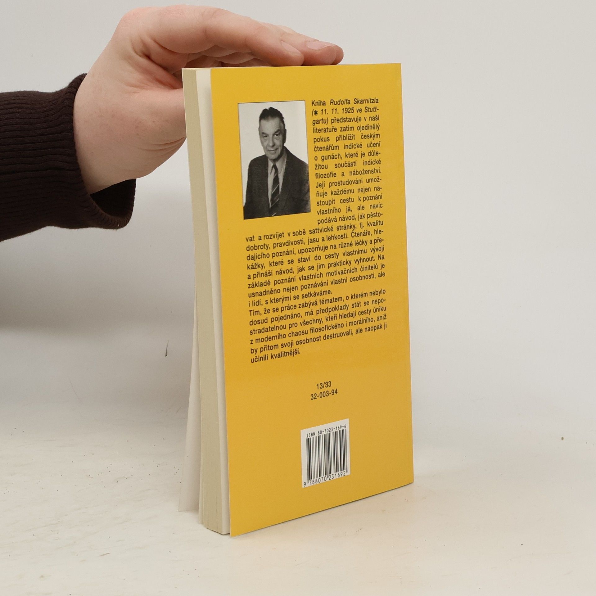 Rudolf Skarnitzel je znám především jako spoluautor první kvalitní knihy o józe, která ovlivnila celou generaci jógových adeptů a byla známa pod názvem „žlutá jóga“. V množství knih, které dnes vycházejí s cílem orientace a nasměrování našeho duchovního uvědomění, chybí stať o konkrétním poznávání zdrojů našich tužeb a emocí, které nás utvářejí každým člověkem hýbají. Problém zkvalitnění mysli, který byl ve „žluté józe“ jenom nastíněn je v tomto díle rozpracován a představuje tak zdařilý pokus o zaplnění této mezery. Problematika gun, iniciátorů našeho chování, je tu ojedinělým způsobem uvedena a přibližuje čtenáři jedinečný přínos indické filozofie. Zainteresovanému čtenáři se tak dostává možnost spolehlivě rozvíjet dobré stránky své osobnosti a opačné eliminovat