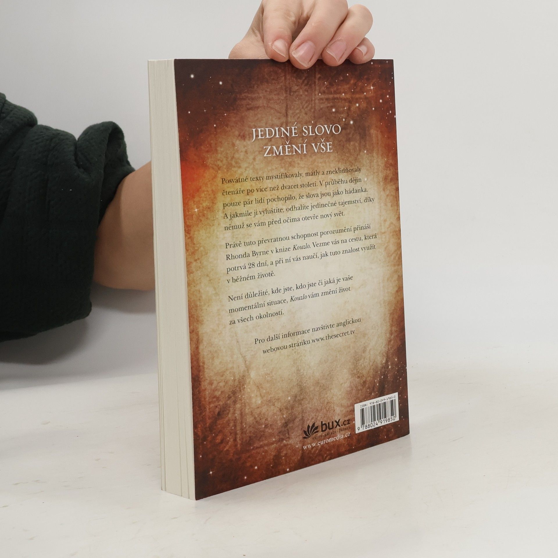 Posvátné texty mystifikovaly, mátly a zneklidňovaly čtenáře po více než dvacet století. V průběhu dějin pouze pár lidí pochopilo, že slova jsou jako hádanka. A jakmile ji vyluštíte, odhalíte jedinečné tajemství, díky němuž se vám před očima otevře nový svět. Právě tuto převratnou schopnost porozumění přináší Rhonda Byrne v knize Kouzlo. Vezme vás na cestu, která potrvá 28 dní, a při ní vás naučí, jak tuto znalost využít v běžném životě. Není důležité, kde jste, kdo jste či jaká je vaše momentální situace, Kouzlo vám změní život za všech okolností.