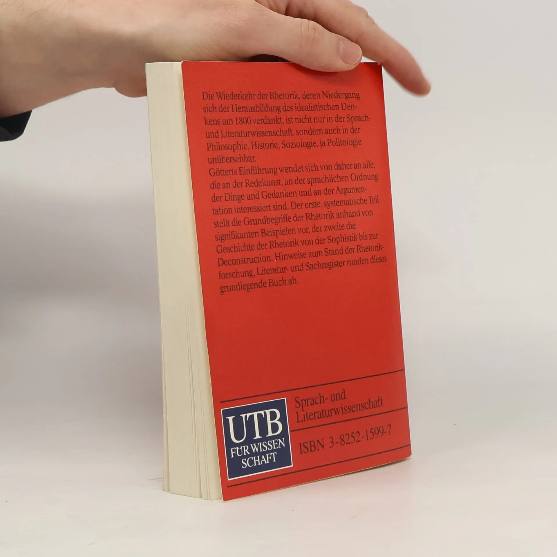 Götterts Einführung wendet sich an alle, die an der Redekunst, an der sprachlichen Ordnung der Dinge und Gedanken und an der Argumentation interessiert sind. Der erste, systematische Teil stellt die Grundbegriffe der Rhetorik vor, der zweite die Geschichte der Rhetorik von der Sophistik bis zur Deconstrotion. Hinweise zum Stand der Rhetorikforschung, Literatur- und Sachregister runden dieses grundlegende Buch ab.