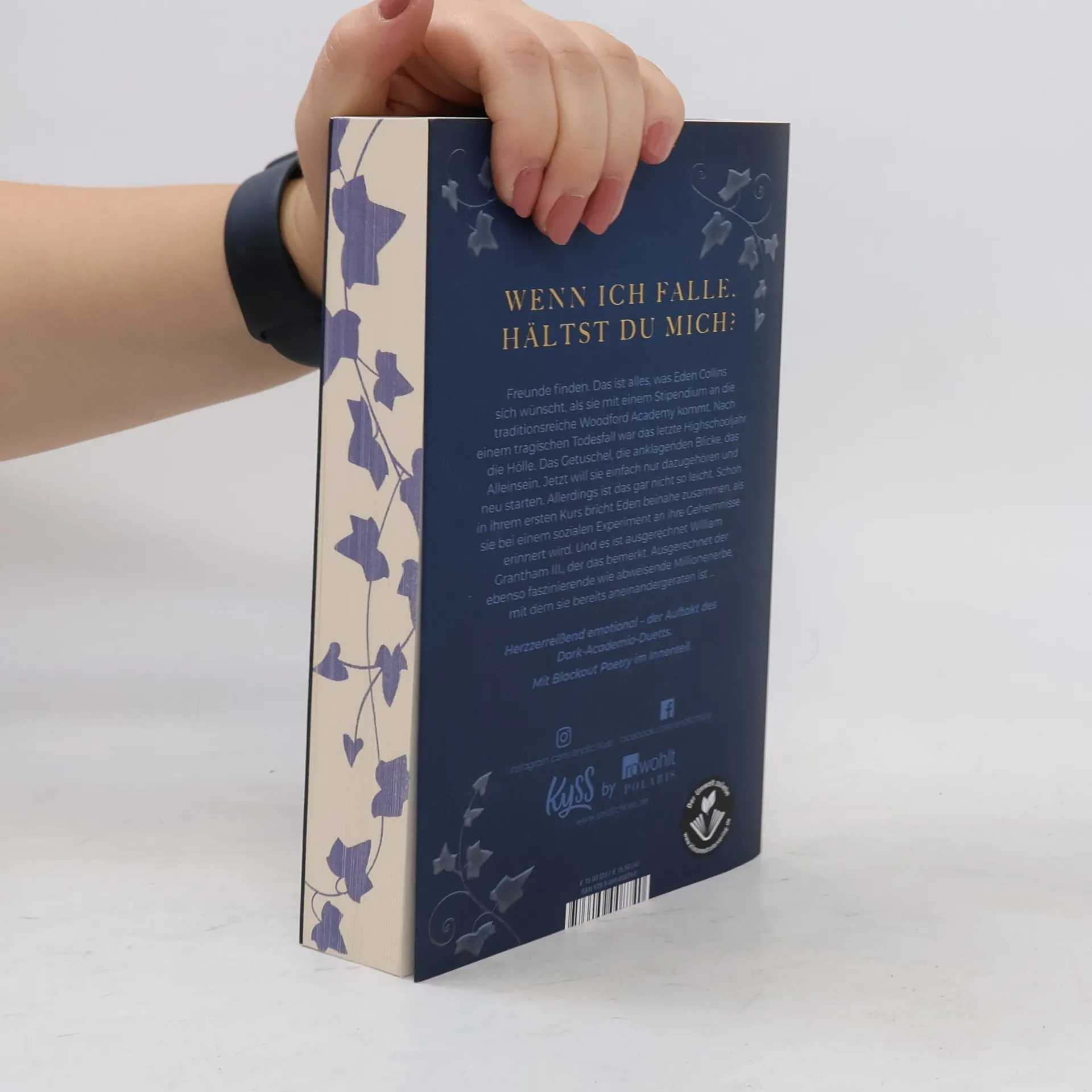 Wenn ich falle, hältst du mich? Der Auftakt zum Dark-Academia-Duett von Spiegel-Bestseller-Autorin Nikola Hotel. Freunde finden. Das ist alles, was Eden Collins sich wünscht, als sie mit einem Stipendium an die traditionsreiche Woodford Academy kommt. Nach einem tragischen Todesfall war das letzte Highschooljahr die Hölle. Das Getuschel, die anklagenden Blicke, das Alleinsein. Jetzt will sie einfach nur dazugehören und neu starten. Allerdings ist das gar nicht so leicht. Schon in ihrem ersten Kurs bricht Eden beinahe zusammen, als sie bei einem sozialen Experiment an ihre Geheimnisse erinnert wird. Und es ist ausgerechnet William Grantham III., der das bemerkt. Ausgerechnet der ebenso faszinierende wie abweisende Millionenerbe, mit dem sie bereits aneinandergeraten ist … Herzzerreißend emotional – für alle Fans von mitreißenden Liebesromanen und Dark Academia. Mit Blackout Poetry im Innenteil.