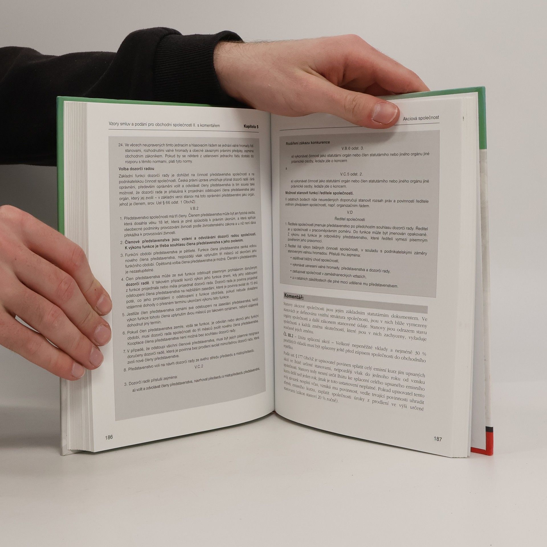 Publikace je zaměřena na charakteristiku obchodních společností, jejich vznik, přeměny a zánik. Velký prostor je věnován ucelenému výkladu o společnostech s ručením omezeným a akciových společnostech, což ocení nejen odborná veřejnost. Autorka se opírá o vlastní praxi, čímž přináší východiska pro vhodnou úpravu obchodních právních vztahů u výše uvedených společností. Předkládané vzory pro obchodní společnosti jsou detailně komentovány a nabízeny v alternativních zněních. Dále je třeba říci, že celá publikace je užitečným pomocníkem nejen pro ty, kteří uvažují o založení společnosti, ale i pro stávající podnikatele, jenž by chtěli pozměnit charakter své společnosti. Kromě výše uvedeného obsahuje publikace i tzv. nepojmenované smlouvy, které se nejčastěji vyskytují v běžném obchodním styku.