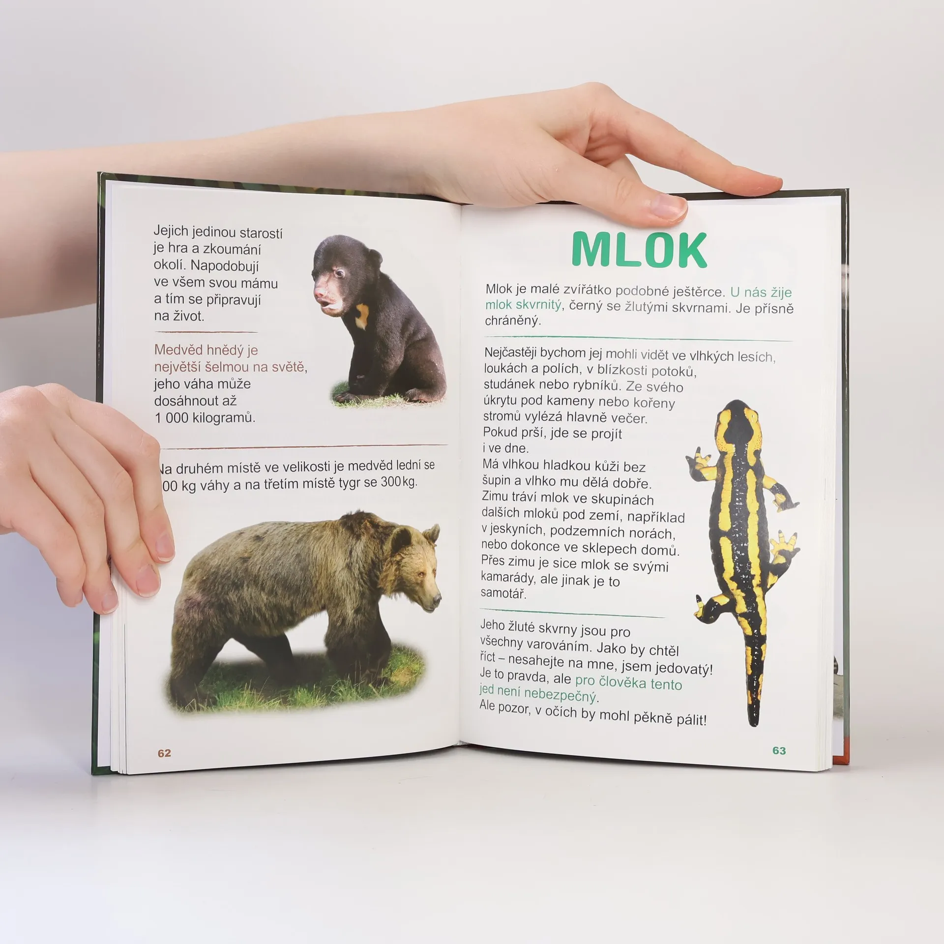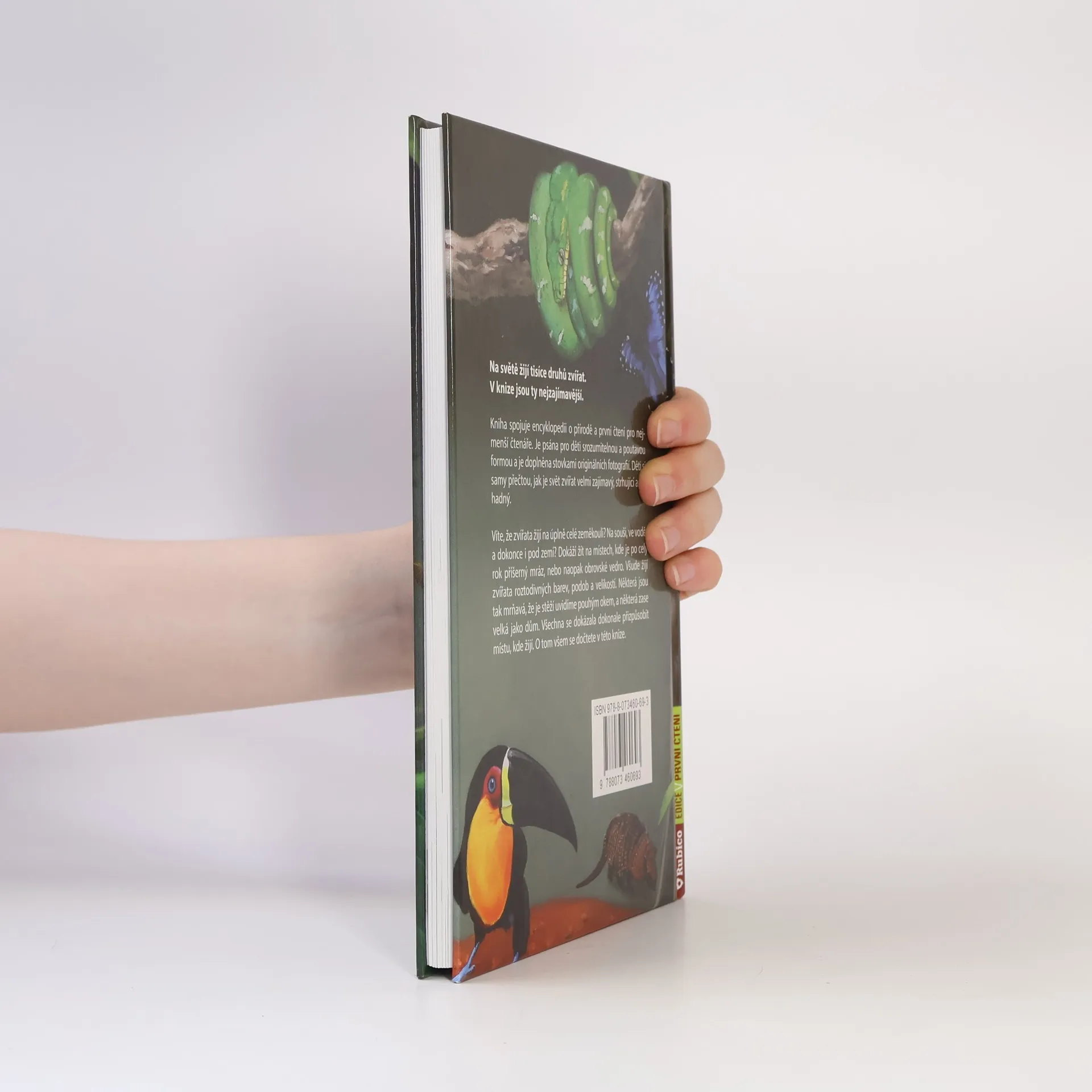 Víte, že zvířata žijí na úplně celé zeměkouli? Na souši, ve vodě, a dokonce i pod zemí? Dokáží žít na místech, kde je po celý rok příšerný mráz, nebo naopak obrovské vedro. Všude žijí zvířata roztodivných barev, podob a velikostí. Některá jsou tak mrňavá, že je stěží uvidíme pouhým okem, a některá zase velká jako dům. Všechna se dokázala dokonale přizpůsobit místu, kde žijí. O tom všem se dočtete v této knize. Kniha spojuje encyklopedii o přírodě a první čtení pro nejmenší čtenáře. Je psána pro děti srozumitelnou a poutavou formou a je doplněna stovkami originálních fotografií. Děti si samy přečtou, jak je svět zvířat velmi zajímavý, strhující a záhadný. Jednoduchý text je psán velkým písmem, slova nejsou rozdělena na dva řádky.