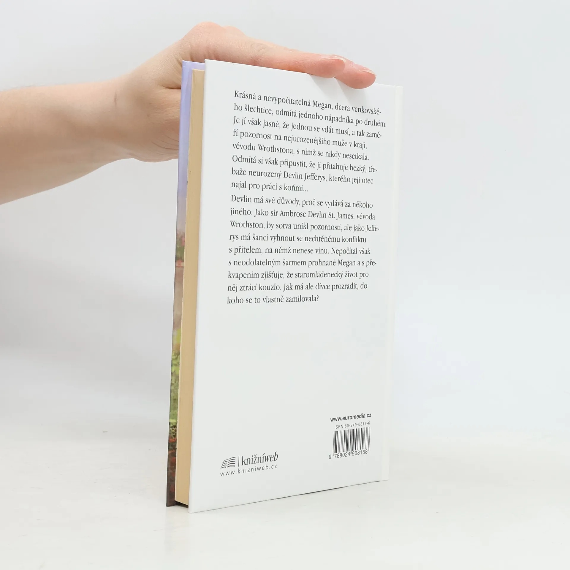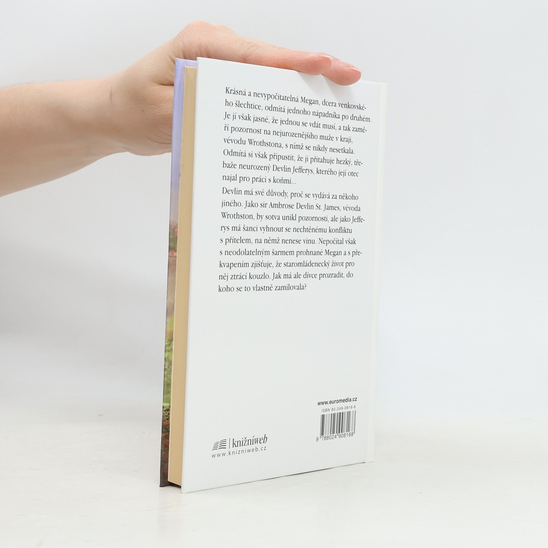 Krásná a nevypočitatelná Megan, dcera venkovského šlechtice, odmítá jednoho nápadníka po druhém. Je jí však jasné, že jednou se vdát musí, a tak zaměří pozornost na nejurozenějšího muže v kraji, vévodu Wrothstona, s nímž se nikdy nesetkala. Odmítá si však připustit, že ji přitahuje hezký, třebaže neurozený Devlin Jefferys, kterého její otec najal pro práci s koňmi... Devlin má své důvody, proč se vydává za někoho jiného. Jako sir Ambrose Devlin St. James, vévoda Wrothson, by sotva unikl pozornosti, ale jako Jefferys má šanci vyhnout se nechtěnému konfliktu s přítelem, na němž nenese vinu. Nepočítal však s neodolatelným šarmem prohnané Megan a s překvapením zjišťuje, že staromládenecký život pro něj ztrácí kouzlo. Jak má ale dívce prozradit, do koho se to vlastně zamilovala?
