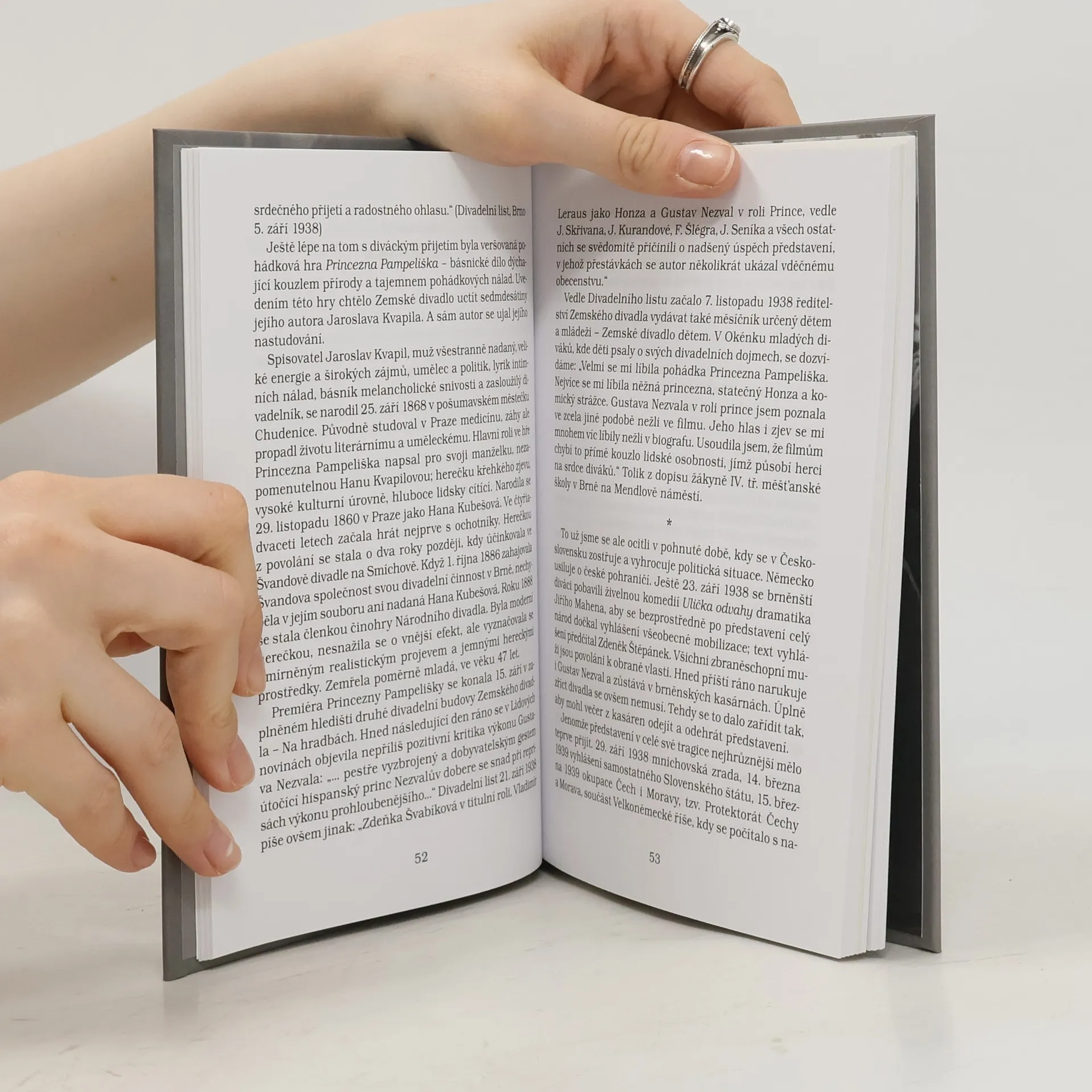 Život a herectví hvězdy 30. a 40. let minulého století, pohledného filmového milovníka, ale i charakterního herce z Moravskoslezského divadla v Ostravě, Zemského divadla v Brně a z Divadla na Vinohradech, kde Gustav Nezval (1907-1998) působil téměř pětatřicet let. Cenné autorčiny nálezy z pátrání v archivech, postřehy z dobových divadelních kritik i z rozhovorů s pamětníky doplňuje osobní vzpomínka hercova syna Jiřího Nezvala.