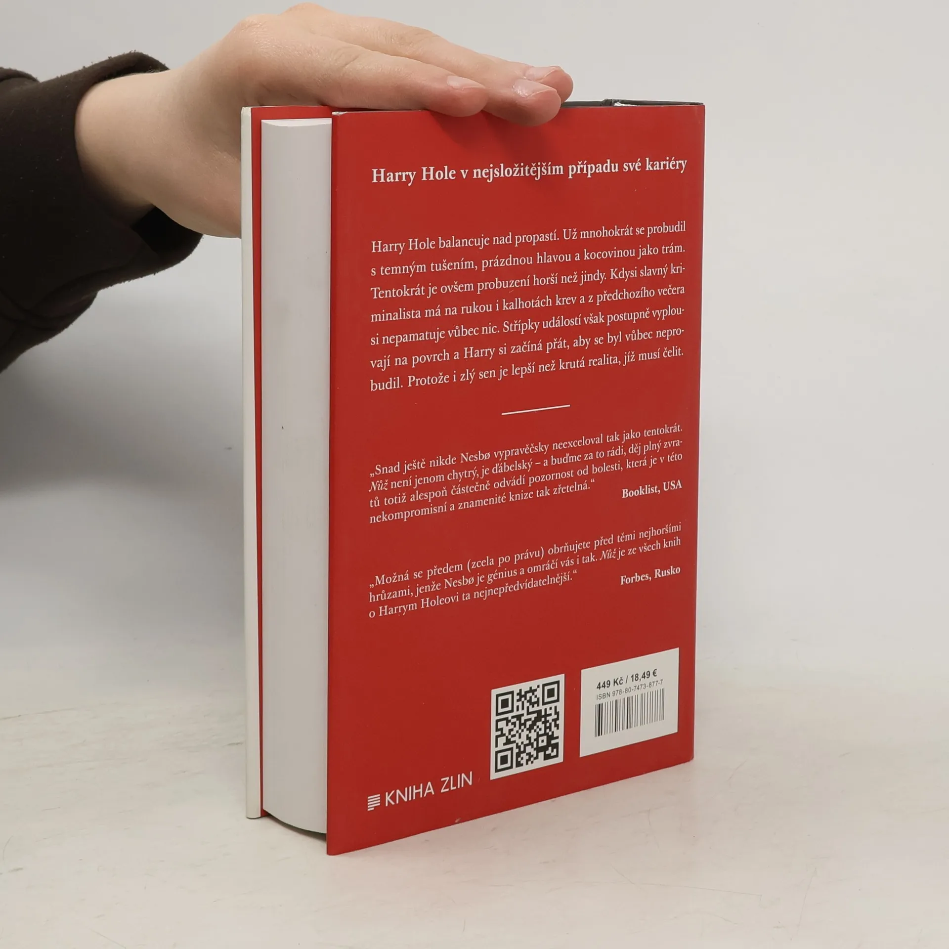Harry Hole se už mnohokrát probudil s temným tušením, prázdnou hlavou a kocovinou jako trám. Tentokrát je ovšem probuzení ještě horší než jindy. Kdysi slavný kriminalista má na rukou i kalhotách krev a až po chvíli si vybaví, že ztratil všechno. To tam je idylické manželství s Ráchel, ta tam je zajímavá práce vyučujícího na policejní akademii. Jediné, co mu zbylo, je věrný přítel Jim Beam. A také místo v kanceláři vedle Trulse Berntsena, kde jakožto bývalá legenda smí na přímluvu svého šéfa aspoň třídit papíry. Co si však Harry vybavit nedokáže, jsou události včerejšího večera v baru Jealousy. Jednotlivé střípky vyplouvají na povrch jen pomaloučku, skládají se však ve strašlivý obrázek. Harry si začíná přát, aby se byl vůbec neprobudil, protože i zlý sen je lepší než krutá realita, jíž musí čelit. Ve chvíli, kdy si myslí, že už se dostal na samé dno a víc ztratit nemůže, se navíc objeví jeho dávný nepřítel Svein Finne. Harry má dvě možnosti: skoncovat se vším hned, anebo se ještě aspoň dočasně vzchopit.