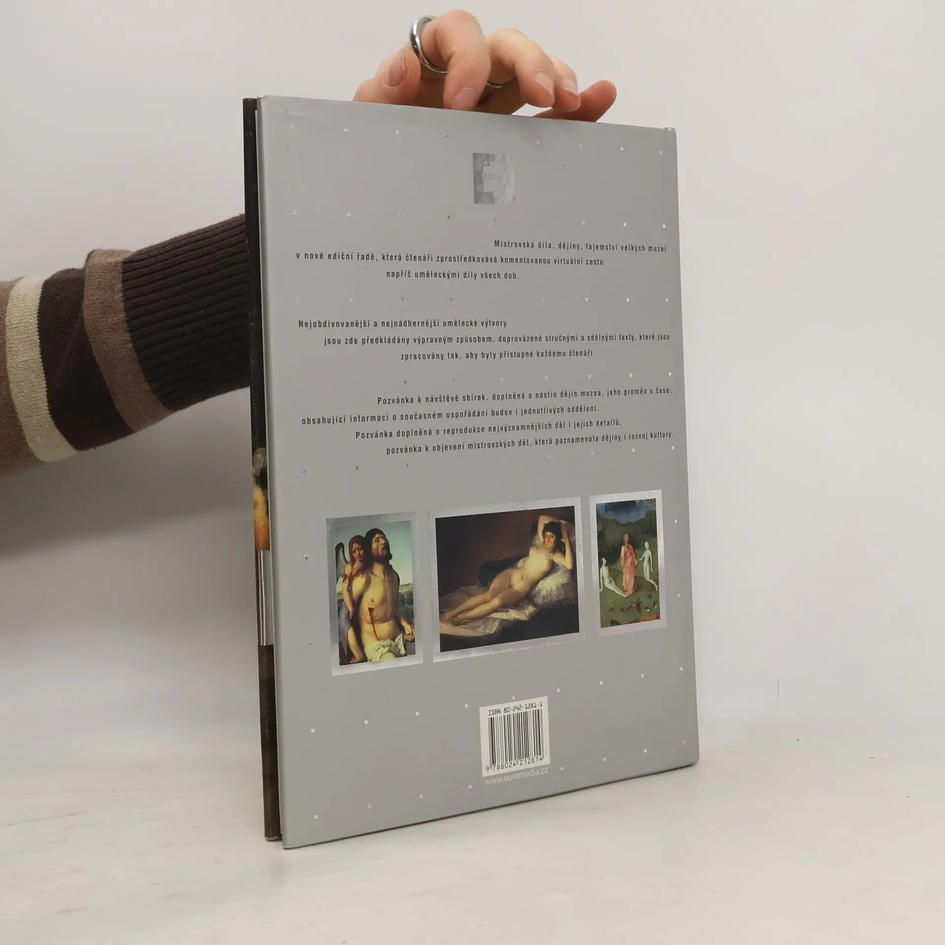 Mistrovská díla, dějiny, tajemství velkých muzeí v nové a původní ediční řadě, která čtenáři zprostředkovává komentovanou, virtuální cestu napříč uměleckými díly všech dob. Nejobdivovanější a nejnádhernější umělecké výtvory jsou zde předkládány výpravným způsobem, doprovázené stručnými a sdělnými texty, které jsou zpracovány tak, aby byly přístupné každému čtenáři. Pozvánka k návštěvě sbírek, doplněná o nástin dějin muzea, jeho proměn v čase, obsahující informaci o současném uspořádání budov i jednotlivých oddělení. Pozvánka doplněná o reprodukce nejvýznamnějších děl i jejich detailů, pozvánka k objevení mistrovských děl, která poznamenala dějiny i rozvoj kultury.... celý text