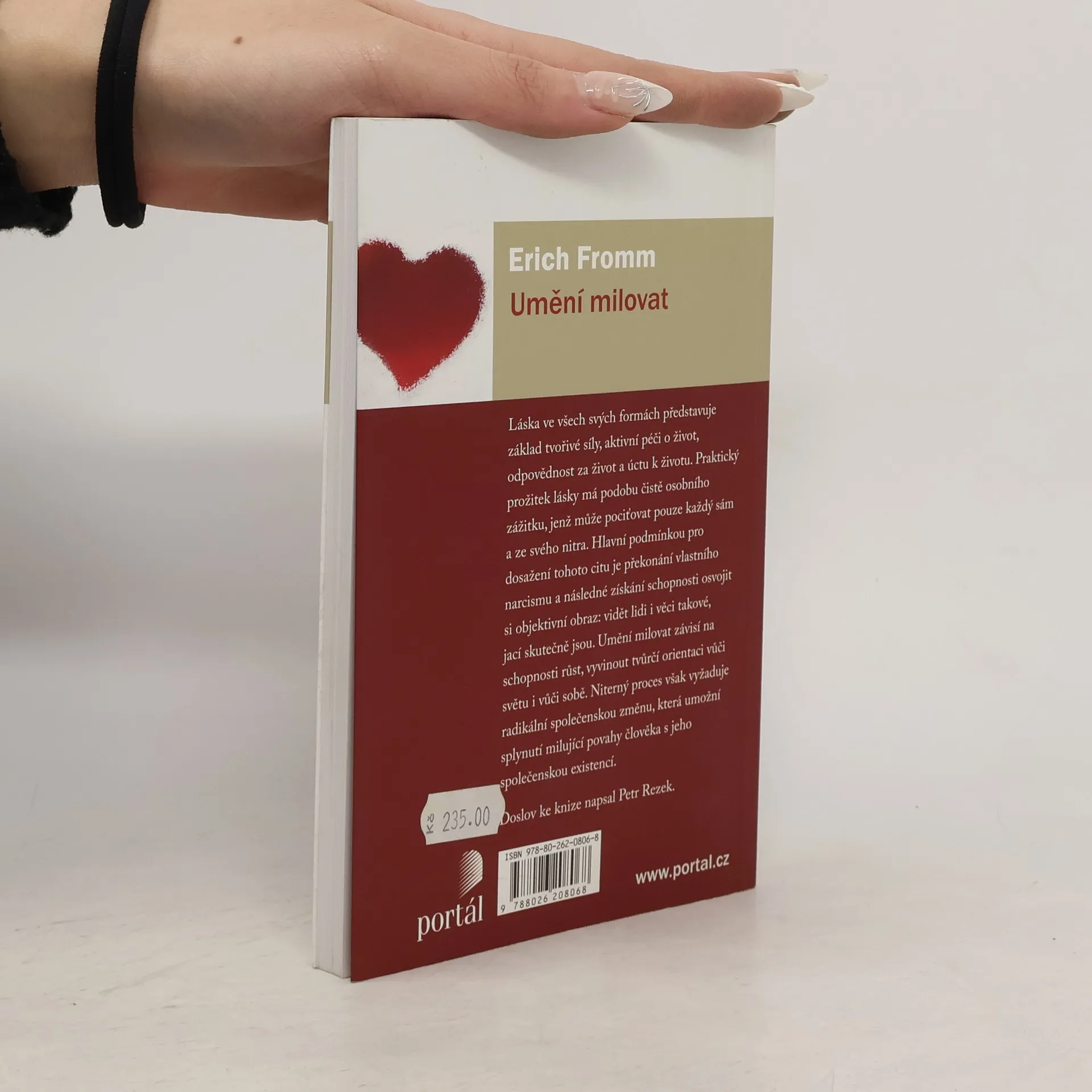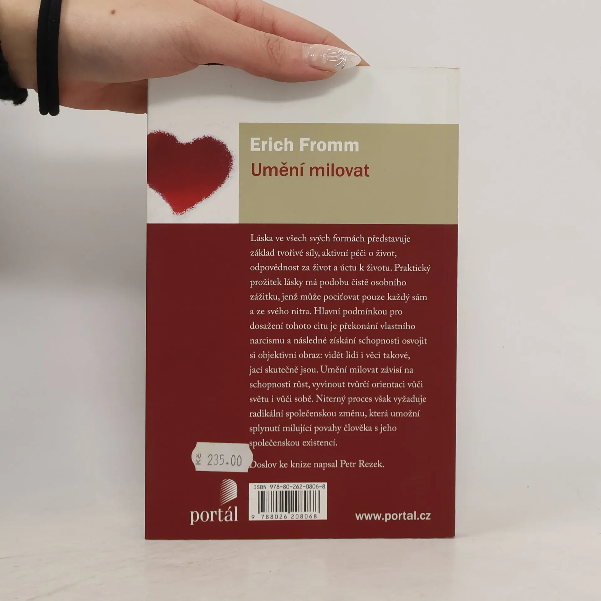 Láska ve všech svých formách představuje základ tvořivé síly, aktivní péči o život, odpovědnost za život a úctu k životu. Praktický prožitek lásky má podobu čistě osobního zážitku, jenž může pociťovat pouze každý sám a ze svého nitra. Hlavní podmínkou pro dosažení tohoto citu je překonání vlastního narcisismu a následné získání schopnosti osvojit si objektivní obraz: vidět lidi i věci takové, jací skutečně jsou. Umění milovat závisí na schopnosti růst, vyvinout tvůrčí orientaci vůči světu i vůči sobě. Niterný proces však vyžaduje radikální společenskou změnu, která umožní splynutí milující povahy člověka s jeho společenskou existencí. Erich Fromm (1900–1980) byl původem německý sociální psycholog, sociolog, humanistický filozof a demokratický socialista, spojený s tzv. frankfurtskou školou a s kulturní psychoanalýzou. Mezi jeho nejznámější knihy patří Strach ze svobody (Portál, 2014), Umění milovat, Anatomie lidské destruktivity, Mít, nebo být.