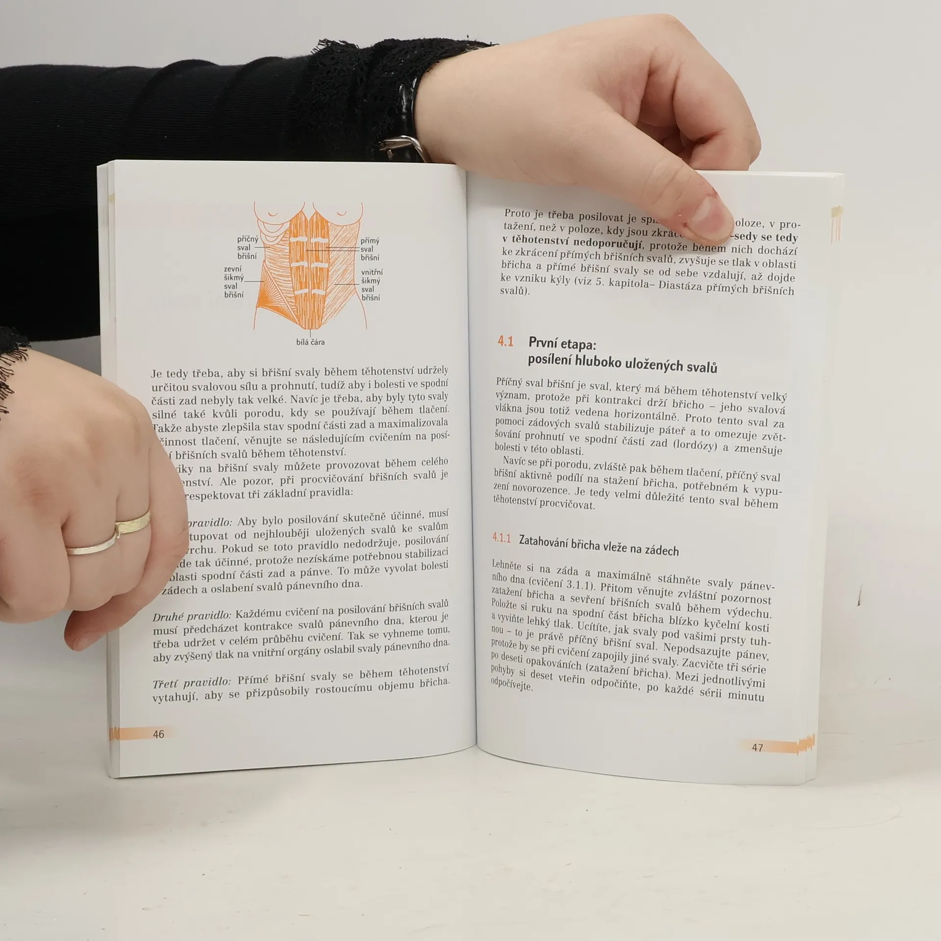Cvičení, masáže a rady pomáhají budoucím maminkám získat více energie a síly před porodem a přispějí k tomu, aby se cítily méně unavené. Zmírňují nebo odstraňují také bolesti zad, křeče v lýtkách a žaludeční nevolnosti. Při dodržování všech rad mohou ženy cvičit doma. Kniha také vysvětluje tělesné změny a příčiny příznaků, které se mohou v období těhotenství projevit. Cvičení jsou seřazena podle toho, na které části těla a fyziologické funkce jsou zaměřena. Začíná se dýchacími cviky, následující kapitoly uvádějí cviky na oběhový systém, břišní, prsní a další partie, cvičení procvičující záda a držení těla. Autorka dále radí, jak předcházet a čelit bolestem, zabývá se také možnostmi a příznivými účinky nebo škodlivostí dalších fyzických aktivit v době těhotenství. Připojena je tabulka programu cvičení pro jednotlivá období těhotenství, uspořádaná po třech měsících.