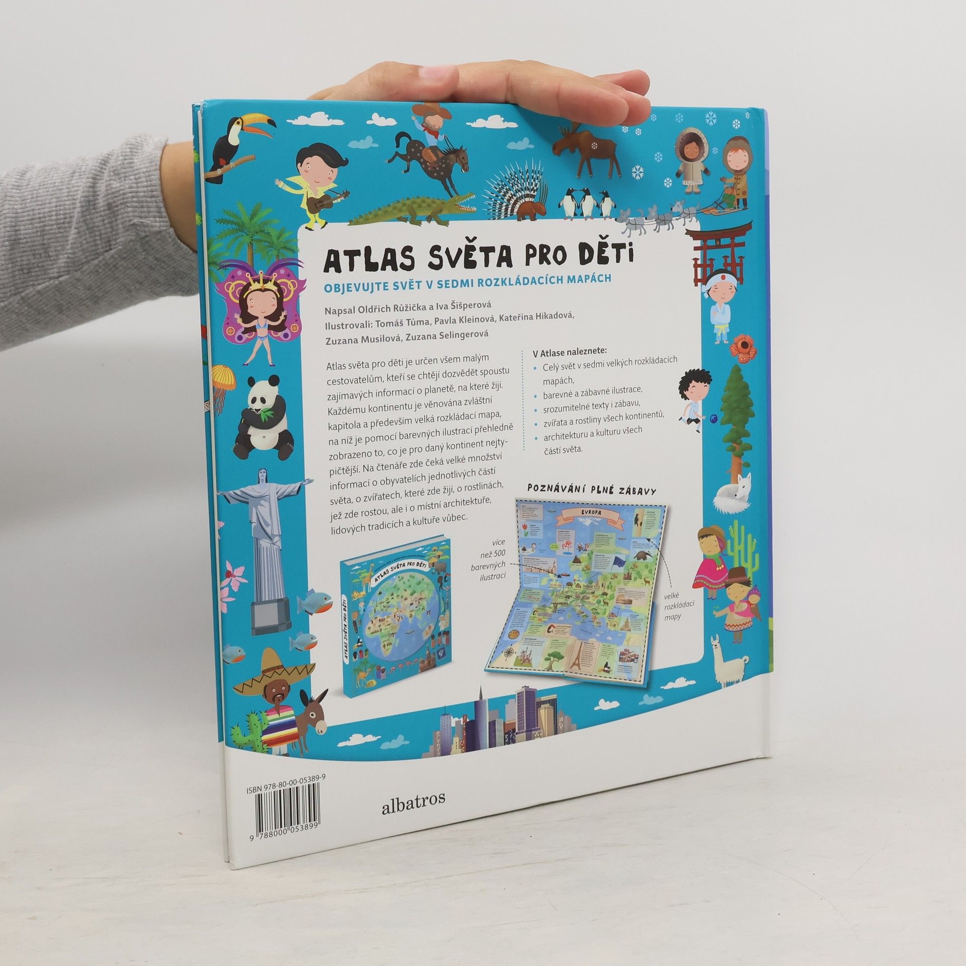 Atlas světa pro děti je určen všem malým cestovatelům, kteří se chtějí dozvědět spoustu zajímavých informací o planetě, na které žijí. Každému kontinentu je věnována zvláštní kapitola a především velká rozkládací mapa, na níž je pomoci barevných ilustrací přehledně zobrazeno to, co je pro daný kontinent nejtypičtější. Na čtenáře zde čeká velké množství informací o obyvatelích jednotlivých částí světa, o zvířatech, které zde žijí, o rostlinách, jež zde rostou, ale i o místní architektuře, lidových tradicích a kultuře vůbec. V Atlase naleznete celý svět v sedmi velkých rozkládacích mapách, patnáct vložených sešitků plných dalších podrobností a informací, barevné a zábavné ilustrace, srozumitelné texty i zábavu, zvířata a rostliny všech kontinentů, architekturu a kulturu všech částí světa.
