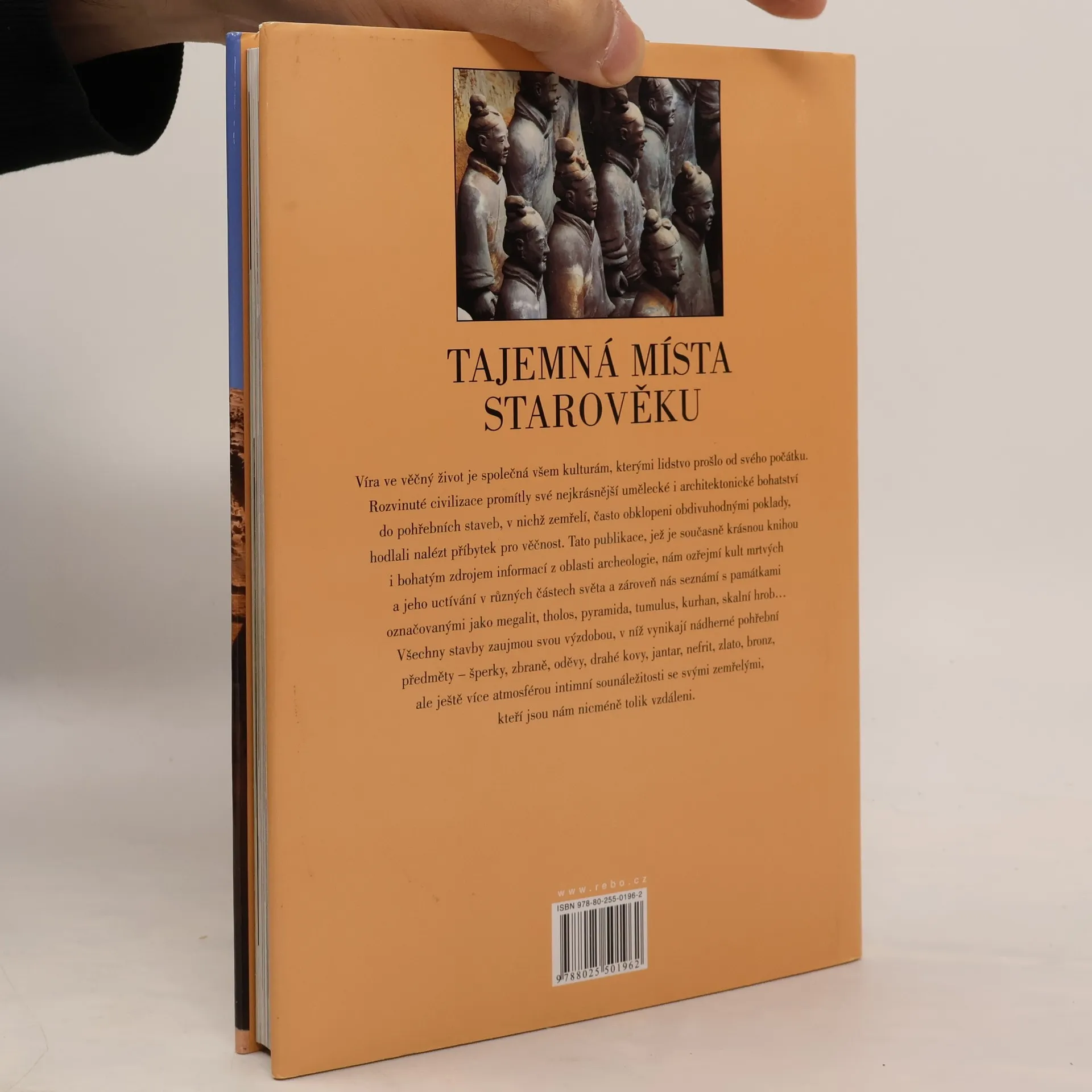 Výpravná publikace plná překrásných fotografií a zasvěcených textů provede čtenáře těmi nejtajemnějšími místy dávnověku. Cesta za poznáním staveb a lokalit, které byly zasvěceny poslednímu odpočinku mocných králů a slavných vladařů, začíná v Evropě. Čtenář nahlédne do Bretaně, do Mykén, poté se zastaví u egyptských pyramid a skalních hrobů v Petře. Zavítá do obřího mauzolea Prvního císaře v Číně a putování zakončí na americkém kontinentu, v zemi Mayů.