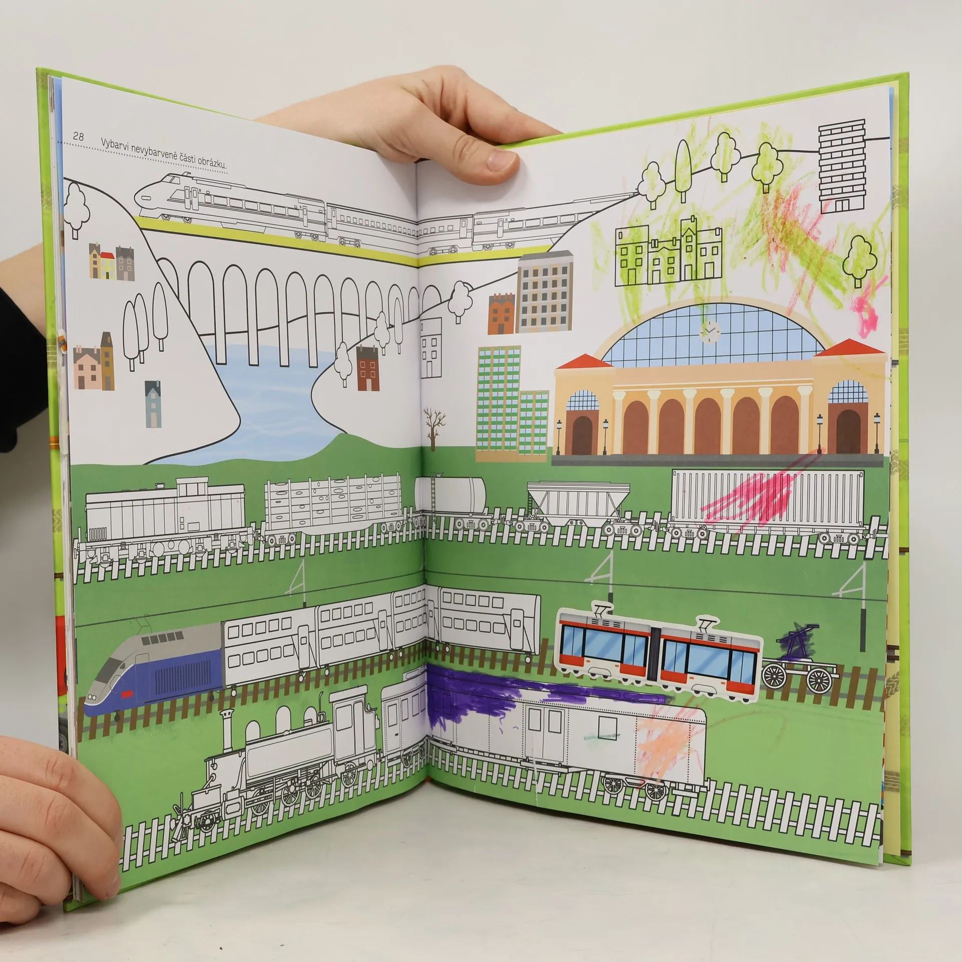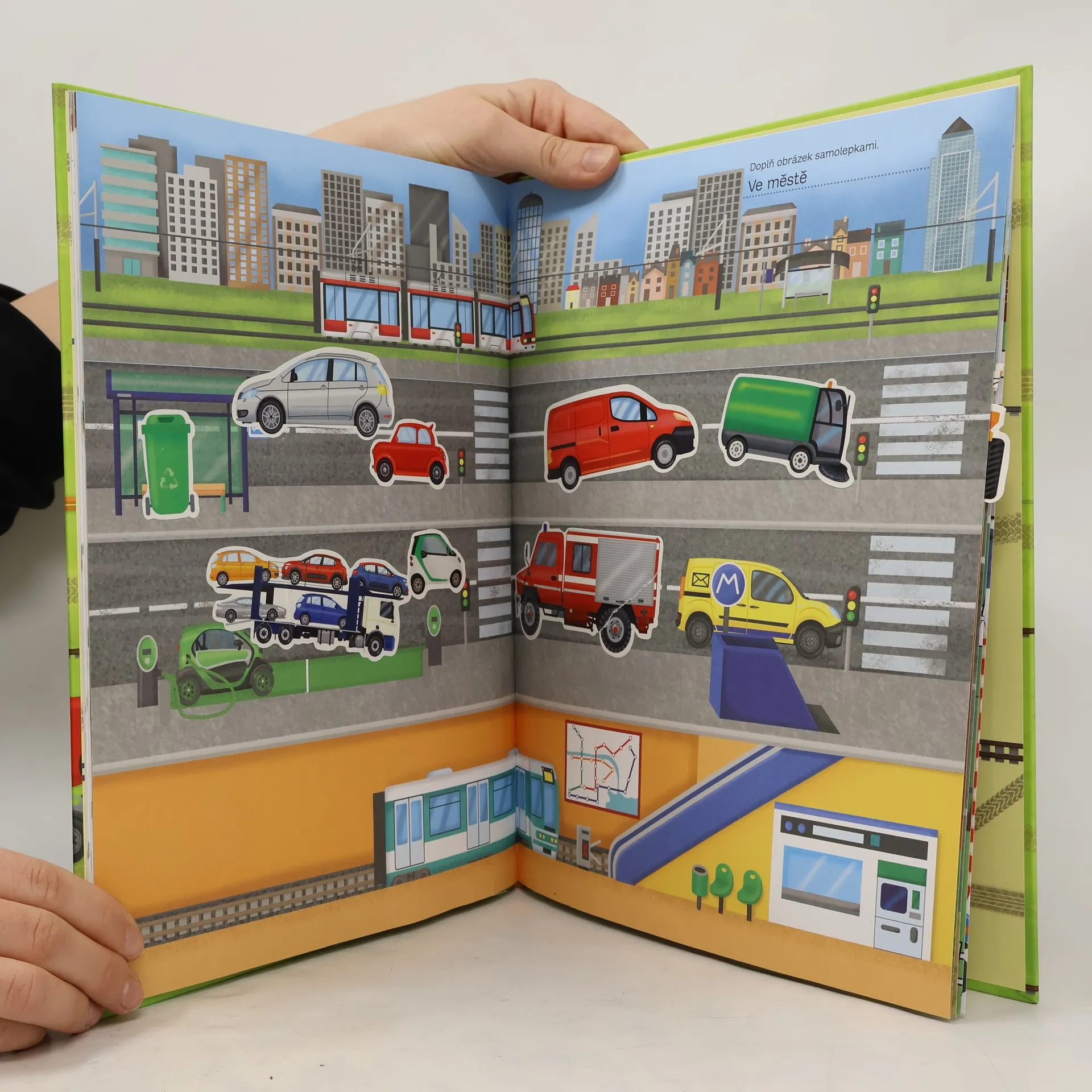 Listujte stránkami, vybarvujte a pomocí samolepek si vytvářejte své vlastní autoparky! Kniha plná obrázků, v níž najdete všechna vozidla, která znáte, a dokonce i ta, která jste nikdy neviděli. Městská miniauta a terénní vozidla, náklaďáky a tahače, stavební a zemědělské stroje, parní lokomotivy a moderní rychlovlaky, to všechno a mnohem více vás čeká na stránkách této knihy.