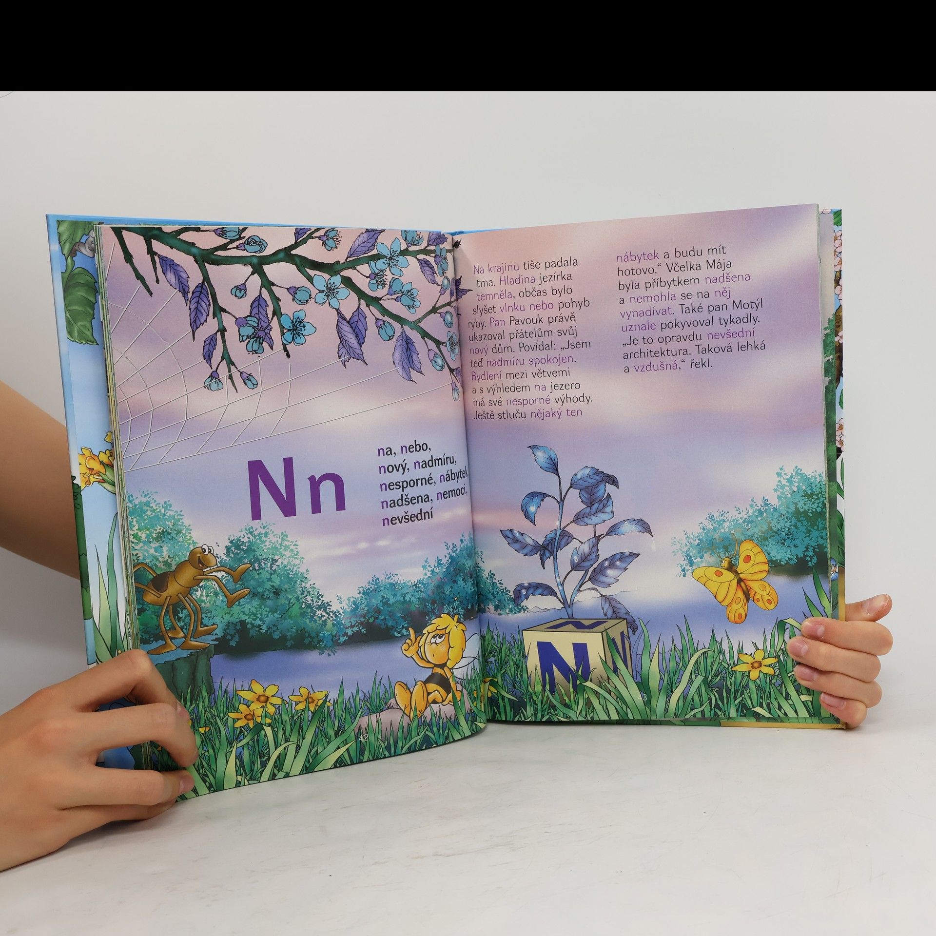Kniha uvede děti do světa včelky Máji a jejích kamarádů. Obsahuje 38 poutavých příběhů,které doprovázejí úžasné celostránkové obrázky.A navíc je každý příběh věnován jednomu písmenu abecedy.Slova,jež tato písmenka obsahují jsou uvedena v přehledu před vyprávěním.Kniha je tedy nejen zábavná,ale i poučná a provede děti českou abecedou.