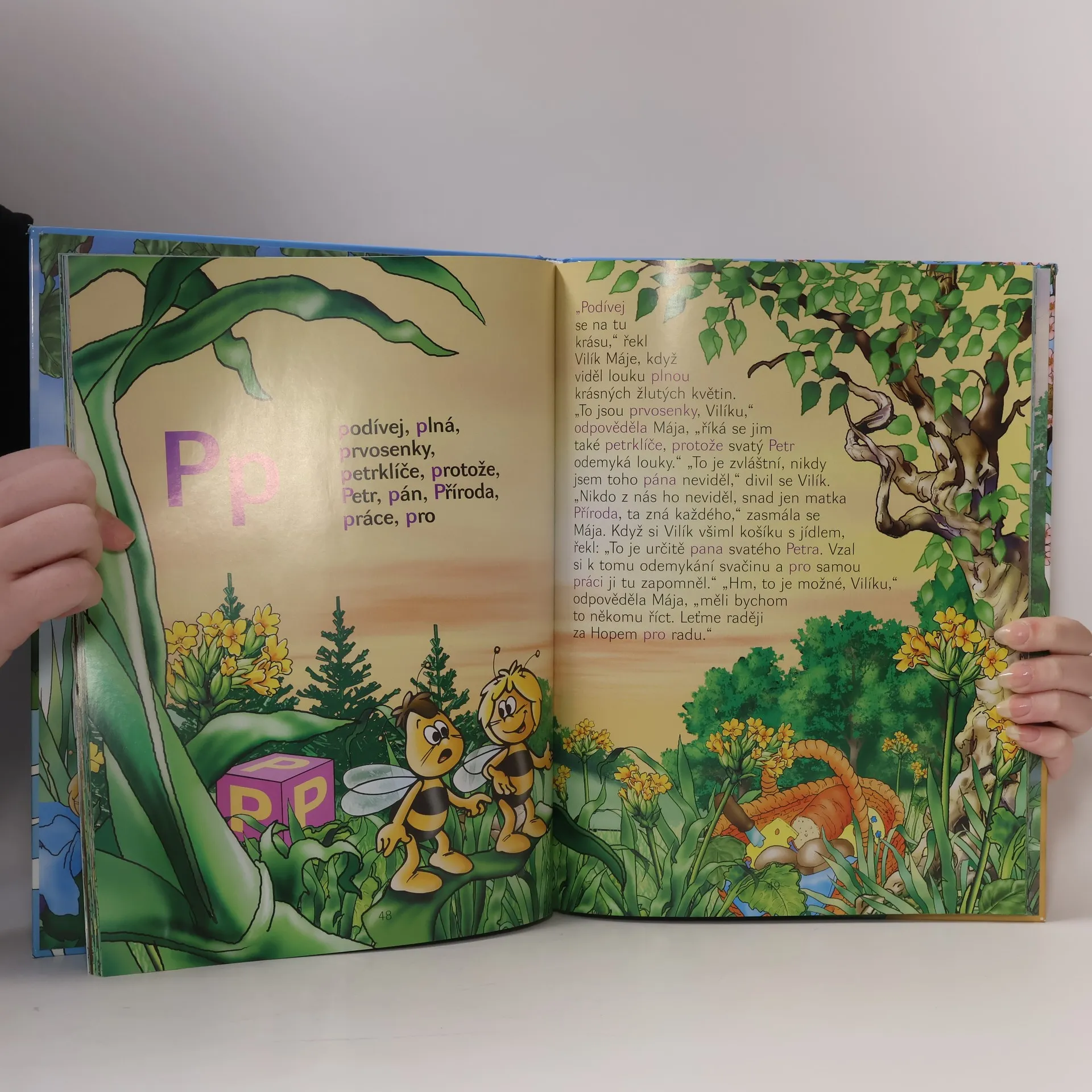 Kniha uvede děti do světa včelky Máji a jejích kamarádů. Obsahuje 38 poutavých příběhů,které doprovázejí úžasné celostránkové obrázky.A navíc je každý příběh věnován jednomu písmenu abecedy.Slova,jež tato písmenka obsahují jsou uvedena v přehledu před vyprávěním.Kniha je tedy nejen zábavná,ale i poučná a provede děti českou abecedou.