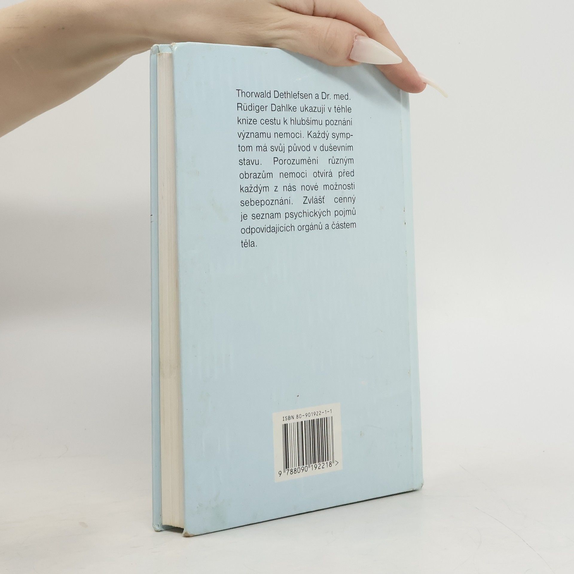 Originální pohled na tělesná onemocnění – infekce, bolesti hlavy, úrazy, srdeční a žaludeční potíže, nádory a AIDS – z pera dvou odborníků na fenomén nemoci, Ruedigera Dahlkeho, lékaře, přírodního léčitele a psychoterapeuta, a Thorwalda Dethlefsena, diplomovaného psychologa a psychoterapeuta. Nemoc je podle nich obecným stavem, projevem života ve stresu a nepohodě, a všechny choroby jsou jen hmotná vyjádření poselství z duchovní sféry, která nám naznačují, co bychom v životě rozhodně měli změnit. Pokud tvrdohlavě trváme na nezdravých vzorcích uvažování a chování, tělo nám to dá nekompromisně najevo. Podle autorů často postačí změna postoje k tomu, aby člověk pocítil znatelnou úlevu i na fyzické úrovni. Doplněno podrobným přehledem symptomů a jejich interpretací.