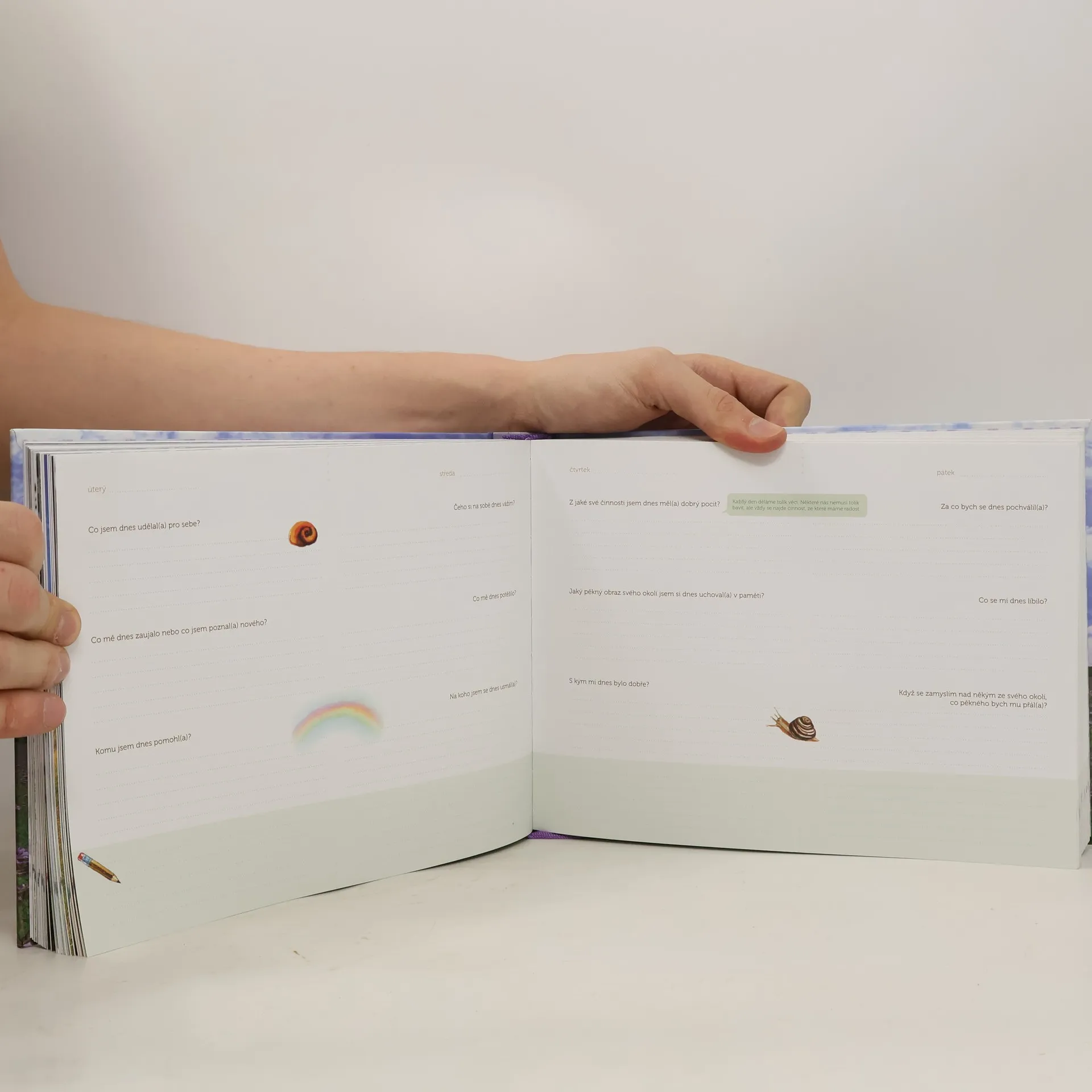 Knížka "3 minuty ke štěstí" pomáhá podívat se na prožitý den pozitivní optikou. Každý den nám přináší okamžiky, ze kterých se můžeme radovat, za které můžeme být vděční. A často si stačí takové situace jen pojmenovat, abychom si připomenuli, že je život plný pěkných chvil.