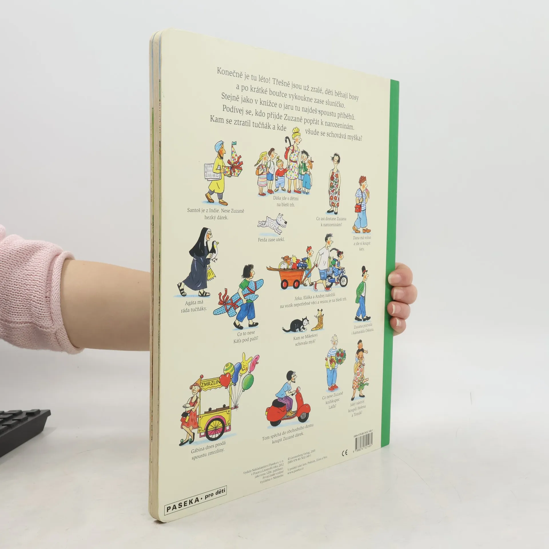 Po knížce o jaru přichází Léto. Autorka na obrázcích znovu vypráví své malé, vtipné příběhy všedního dne, které poutají a bystří pozornost, podněcují fantazii a řečové schopnosti, ale hlavně baví malé i větší děti. V atmosféře slunného léta se opět setkáte s některými starými známými a kamarády z předchozí knížky Jaro. Přibudou další postavy, věci a zvířátka.