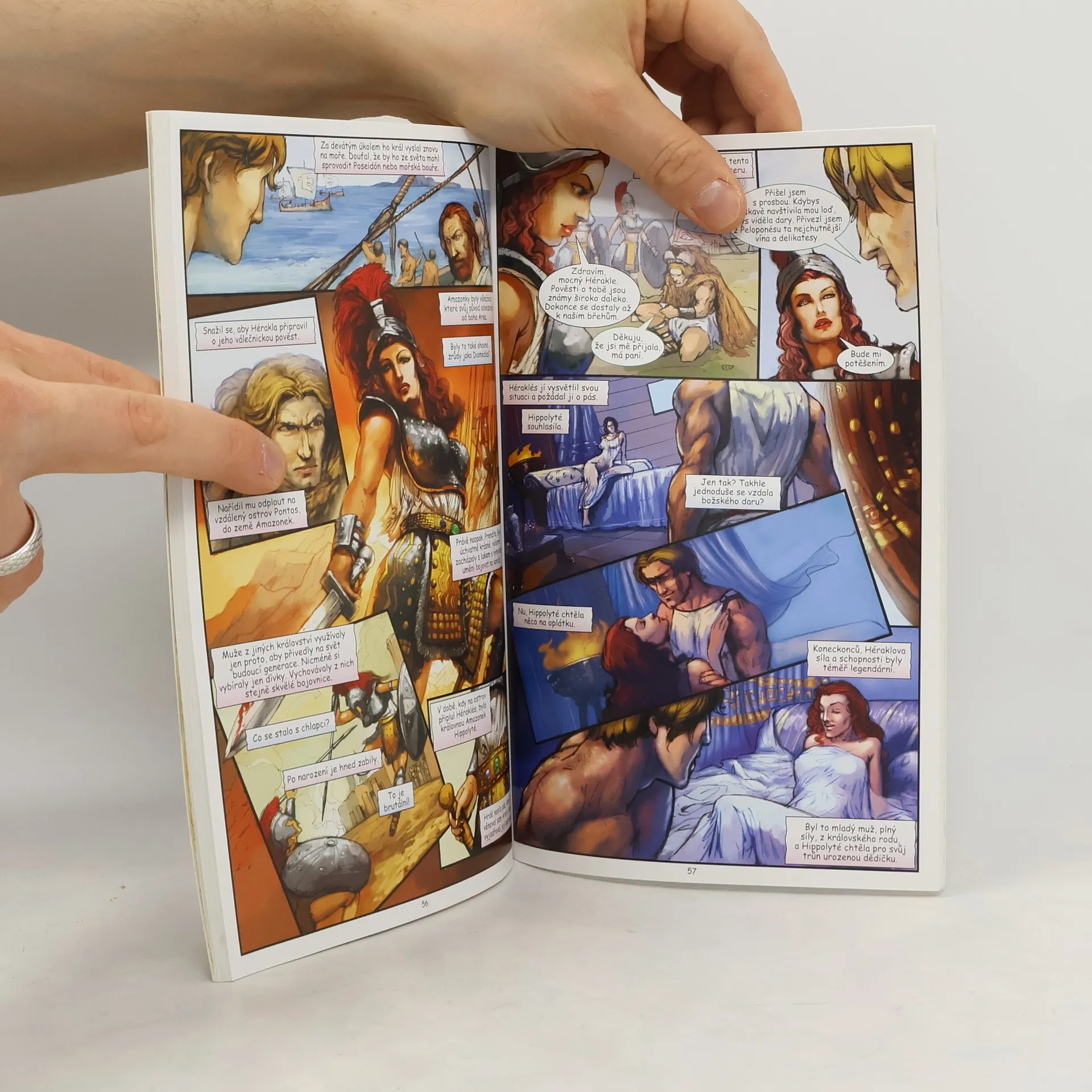 Další ze série komiksů řeckých bájí je určen čtenářům od 9 let. Héraklés měl všechno - krásný domov, milující rodinu a pověst skvělého vojáka, kterého při obraně vlasti nic nezastaví. Pak ho však jeho původ zavedl do zákeřné pasti, jejímž cílem bylo ho zhypnotizovat, aby spáchal ten nejhorší zločin ze všech. Zničený tím, co způsobil, bezcílně bloudil a utápěl se v zoufalství. Naděje mu svitla, až když se dozvěděl, že by svůj hřích mohl vykoupit vykonáním deseti v podstatě nesplnitelných úkolů. Tam, kde by se ostatní muži vzdali a uznali, že jsou poraženi, Héraklés používal svou odvahu, sílu a rozum a pouštěl se do jednoho úkolu za druhým. Uspěje? Nebo má pro něj osud jiné plány...