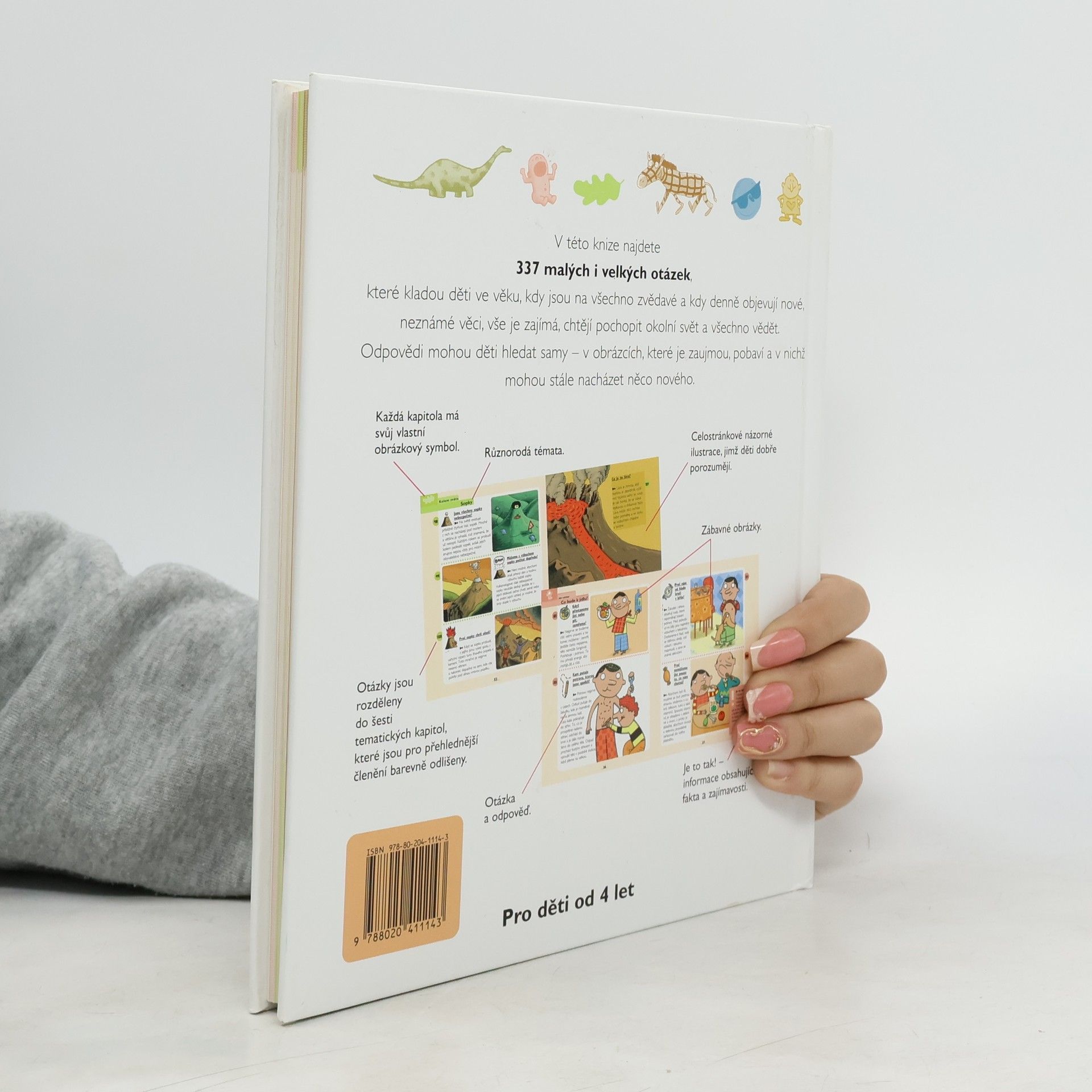 Všeobecná ilustrovaná encyklopedie pro děti od čtyř let, která přístupnou formou odpovídá na otázky ze života kolem nás. Kniha obsahuje 337 otázek, které většinou kladou děti v předškolním věku. Otázky jsou rozděleny do šesti tematických kapitol, které jsou pro přehlednější členění barevně odlišeny. Jak napovídají jednotlivé názvy kapitol, obsahově je kniha velmi rozmanitá: Lidské tělo, Rosteme, Kolem světa, Na procházce, Zvířata, Co se děje ve Vesmíru, Na Zemi, Já a ti druzí, Já a svět. Texty jsou krátké, doplněné četnými ilustracemi, součástí je rejstřík použitých hesel.