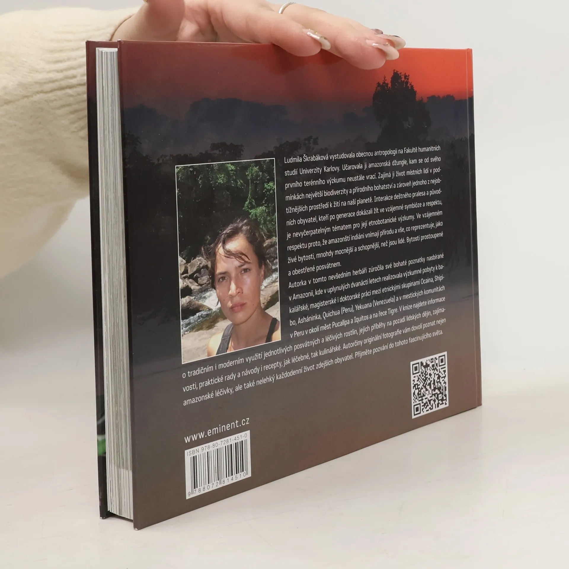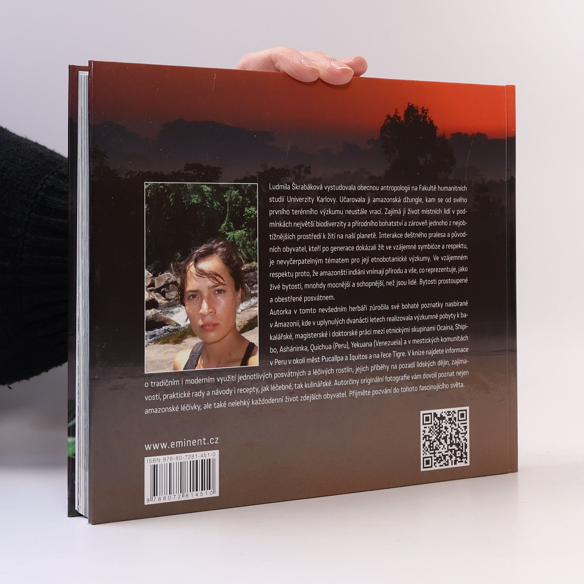 Mgr. Ludmila Škrabáková, doktorandka na Fakultě humanitních studií Univerzity Karlovy, se specializuje na obecnou antropologii a fascinují ji amazonské džungle. Od svého prvního výzkumu k bakalářské práci se neustále vrací do této oblasti, aby zkoumala život místních obyvatel v prostředí s největší biodiverzitou a přírodním bohatstvím, ale také v jednom z nejobtížnějších prostředí na Zemi. Její etnobotanické výzkumy se zaměřují na interakci deštného pralesa a původních obyvatel, kteří žijí v symbióze a respektu k přírodě, kterou vnímají jako živé bytosti, často mocnější než lidé. V tomto herbáři autorka shrnuje bohaté poznatky z dvanáctiletého výzkumu mezi etnickými skupinami jako Ocaina, Shipibo, Asháninka, Quichua (Peru), Yekuana (Venezuela) a mestickými komunitami v Peru. Kniha obsahuje informace o posvátných a léčivých rostlinách, jejich příběhy, praktické rady, návody a recepty na léčebné i kulinářské využití. Originální fotografie autorky přibližují nejen amazonské léčivky, ale i každodenní život místních obyvatel. Přijměte pozvání do fascinujícího světa amazonské džungle.