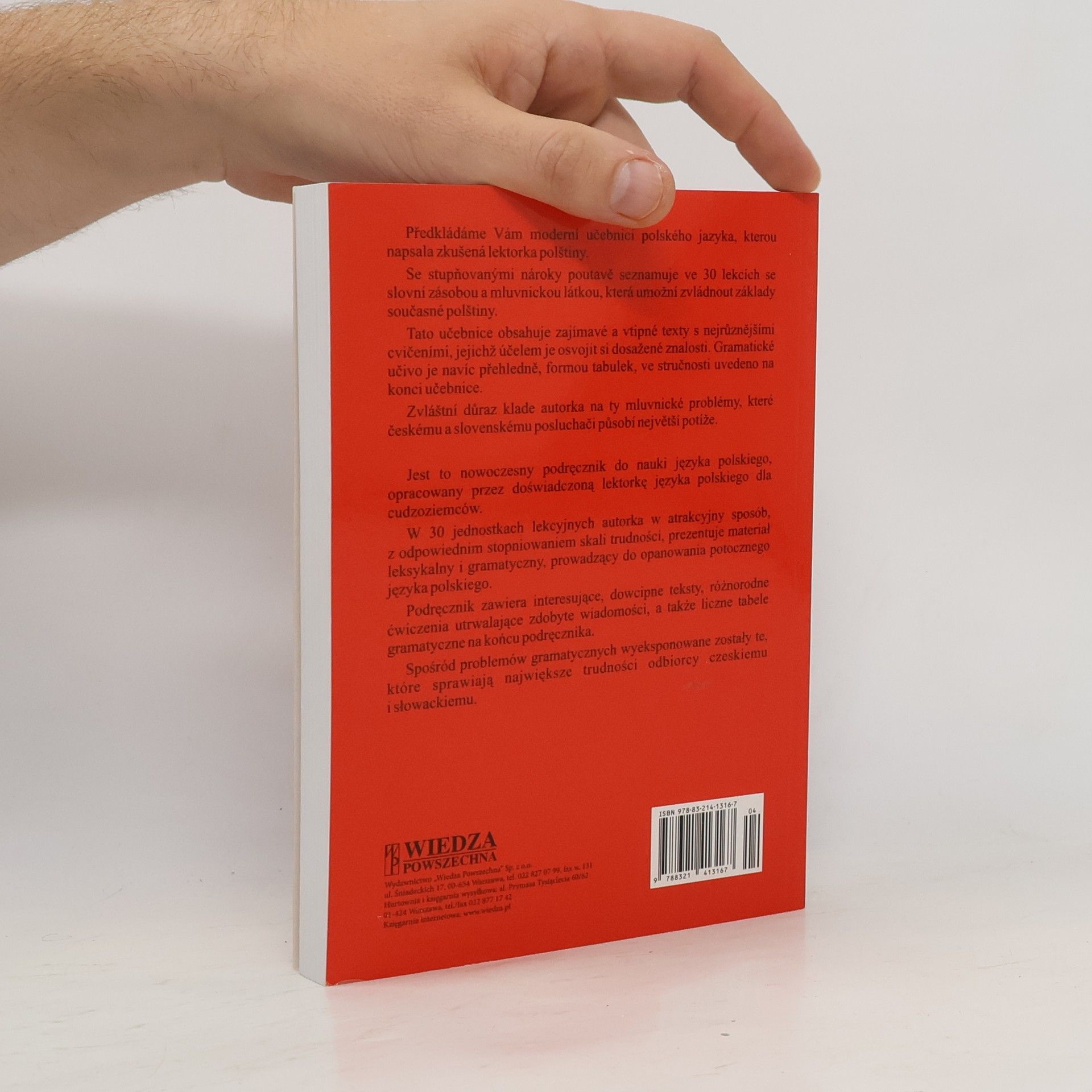 Tato učebnice je určena pro Čechy, kteří se začínají učit polsky. Ve 30 lekcích jsou obsažena základní mluvnická pravidla, slovní zásoba a některé frazeologické obraty. Slovní zásoba všech lekcí je obsažena ve slovníčku (na konci učebnice).