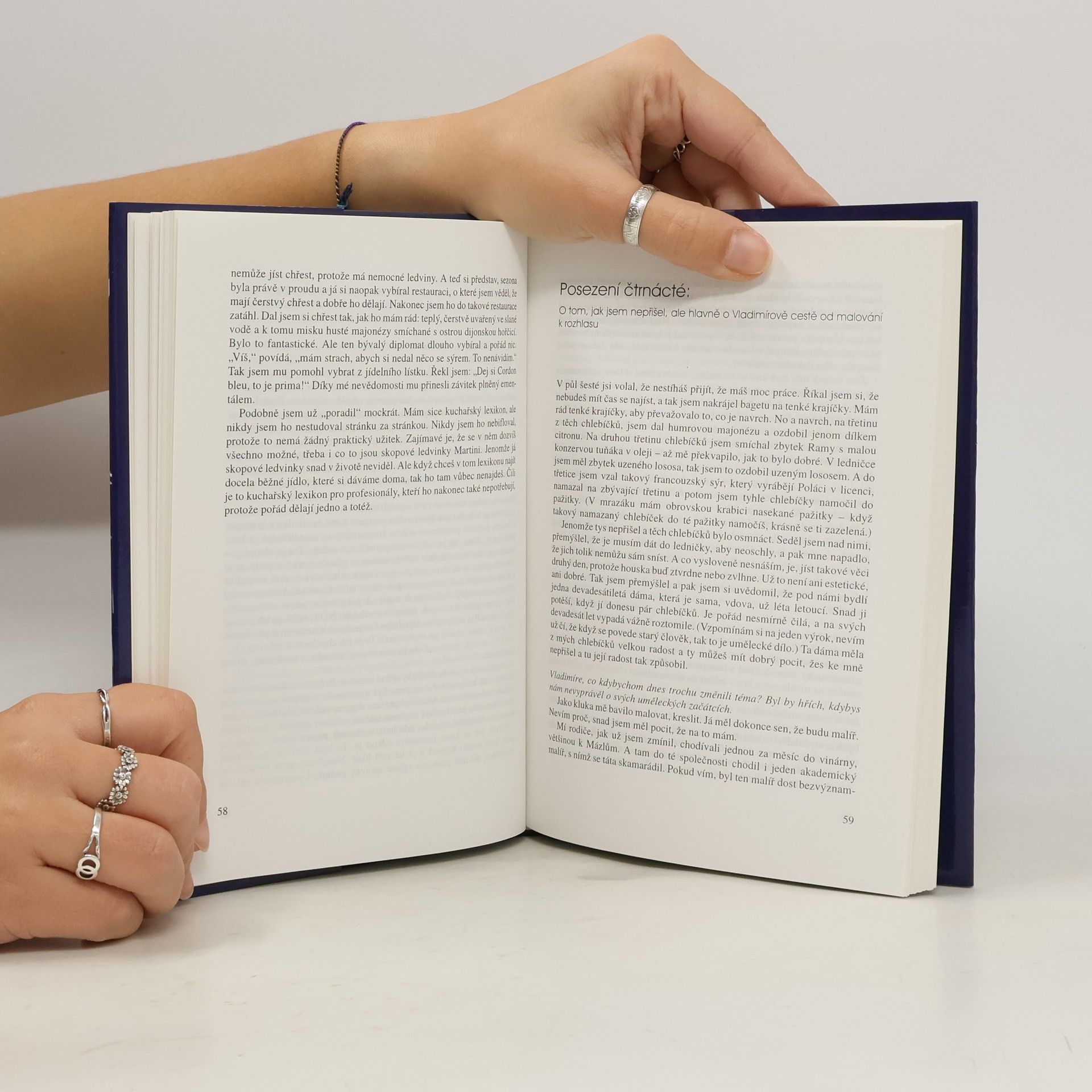 Třicet posezení Vladimíra Dvořáka s autorem, je důkazem že Vladimír Dvořk se vyzná v kuchyni i když sám sebe považuje za poučeného amatéra. Humorné vzpomínky na setkání s řadou známých umělců a jiných osobností, nahlédnutí do jeho kuchyně a "ochutnání" pokrmů, které lákají, už když se o nich jen čte.