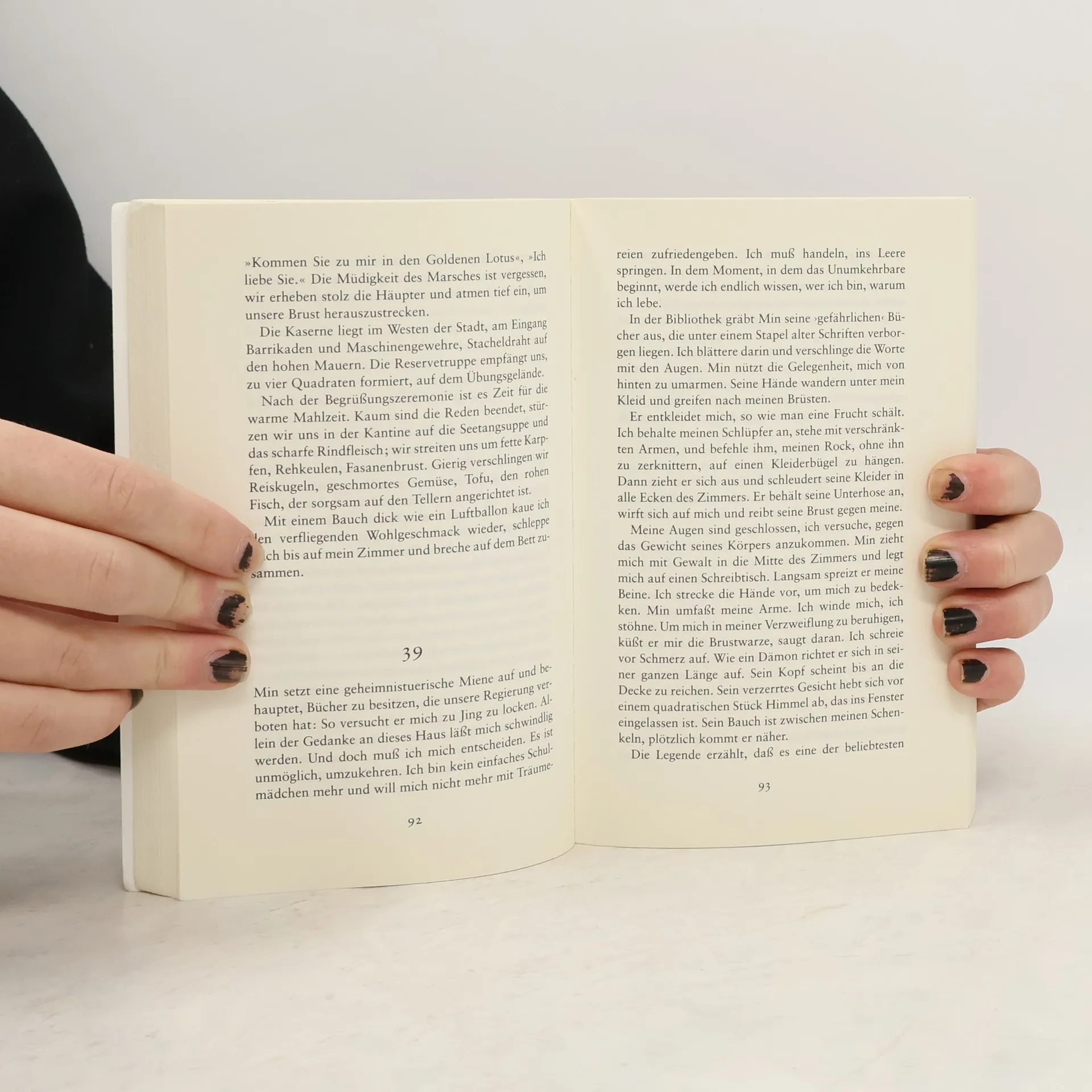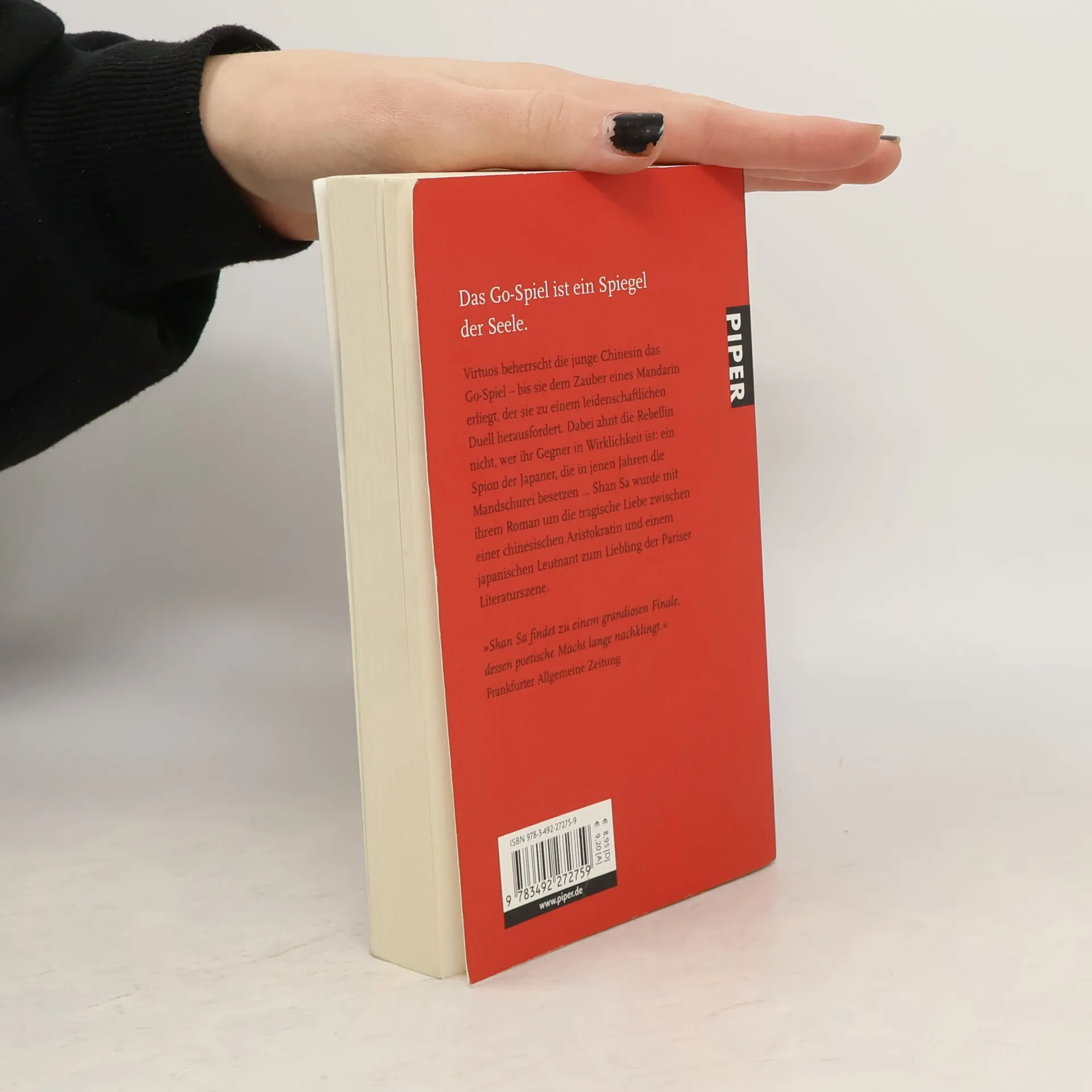 Virtuos beherrscht die junge Chinesin das Go-Spiel – bis sie dem Zauber eines Mandarin erliegt, der sie zu einem leidenschaftlichen Duell herausfordert. Dabei ahnt die Rebellin nicht, wer ihr Gegner in Wirklichkeit ist: ein Spion der Japaner, die in jenen Jahren die Mandschurei besetzen. Shan Sa wurde mit ihrem Roman um die tragische Liebe zwischen einer chinesischen Aristokratin und einem japanischen Leutnant zum Liebling der Pariser Literaturszene.