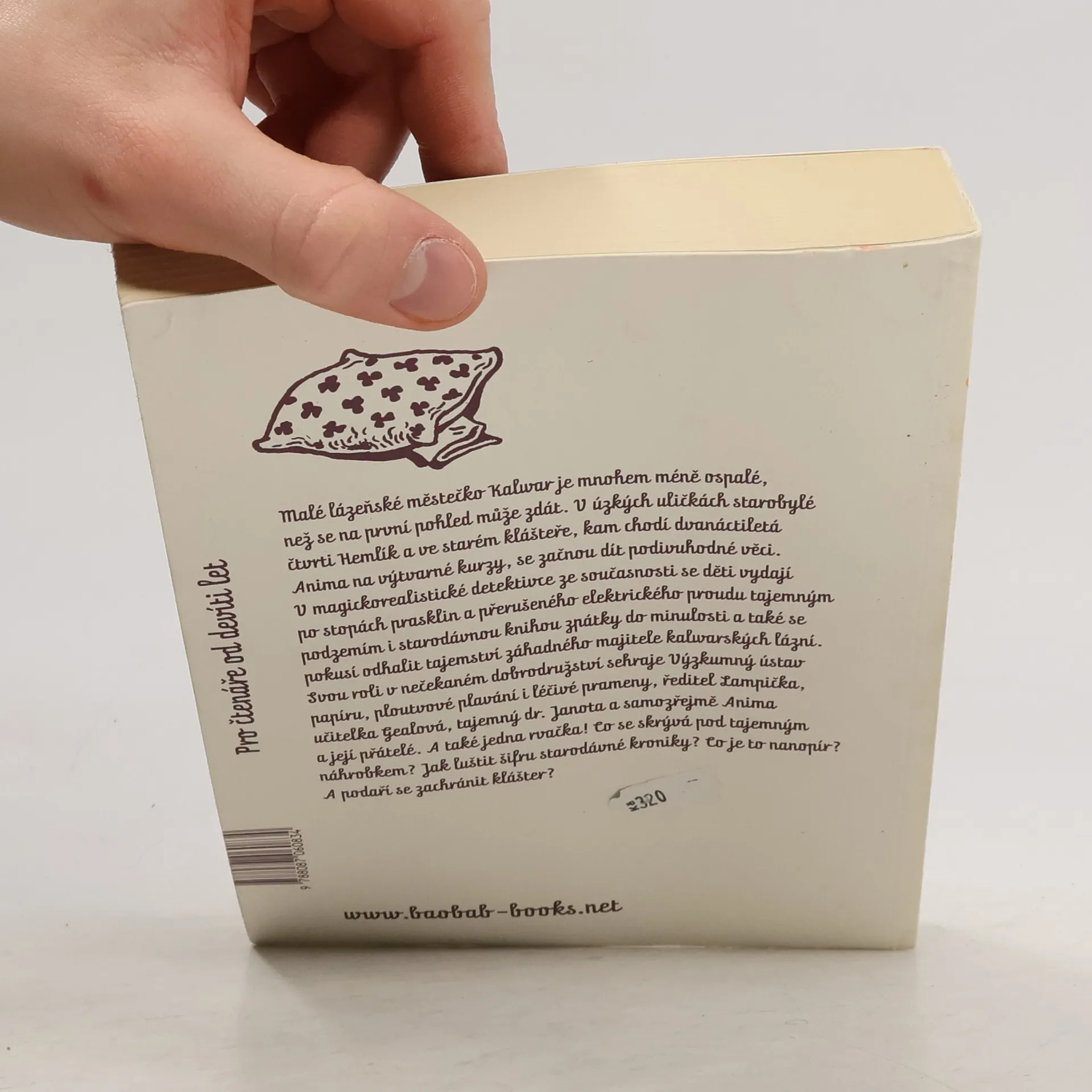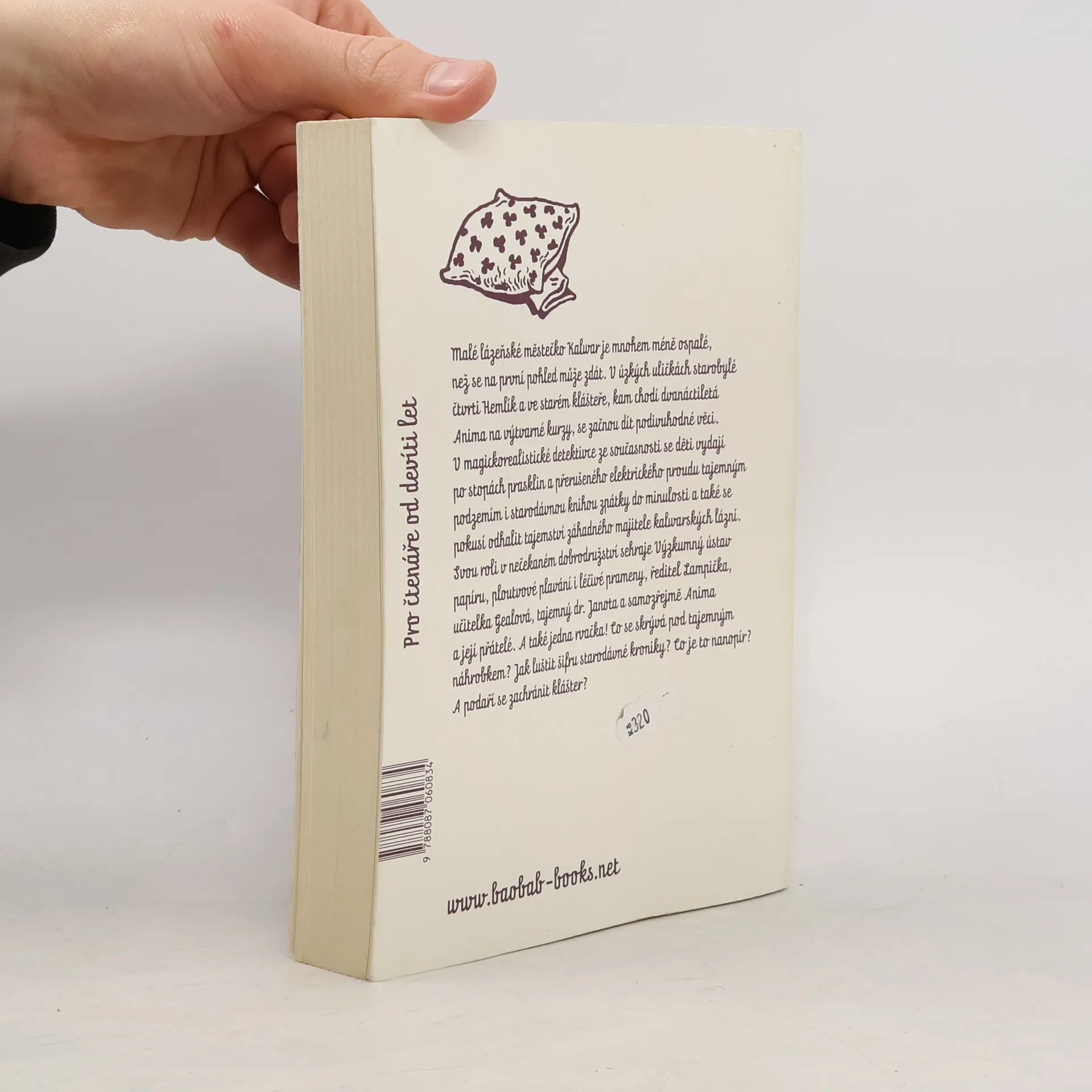 Malé lázeňské městečko Kalwar je mnohem méně ospalé, než se na první pohled může zdát. V úzkých uličkách starobylé čtvrti a ve starém klášteře, kam chodí dvanáctiletá Anima na výtvarné kurzy, se začnou dít podivuhodné věci. V magicko-realistické detektivce ze současnosti se děti vydají po stopách prasklin a přerušeného elektrického proudu, tajemným podzemím i starodávnou kronikou zpátky do minulosti. Všechny stopy vedou na jediné místo - do starého kláštera. Dospělí nic z toho nevidí, a tak je na Animě a jejich dvou kamarádech, aby zjistili, co se vlastně kolem nich děje. Svou roli v nečekaném dobrodružství sehraje Výzkumný ústav papíru, ploutvové plavání i léčivé prameny, ředitel Lampička, učitelka Gealová, tajemný dr. Janota a samozřejmě Anima a její přátelé.