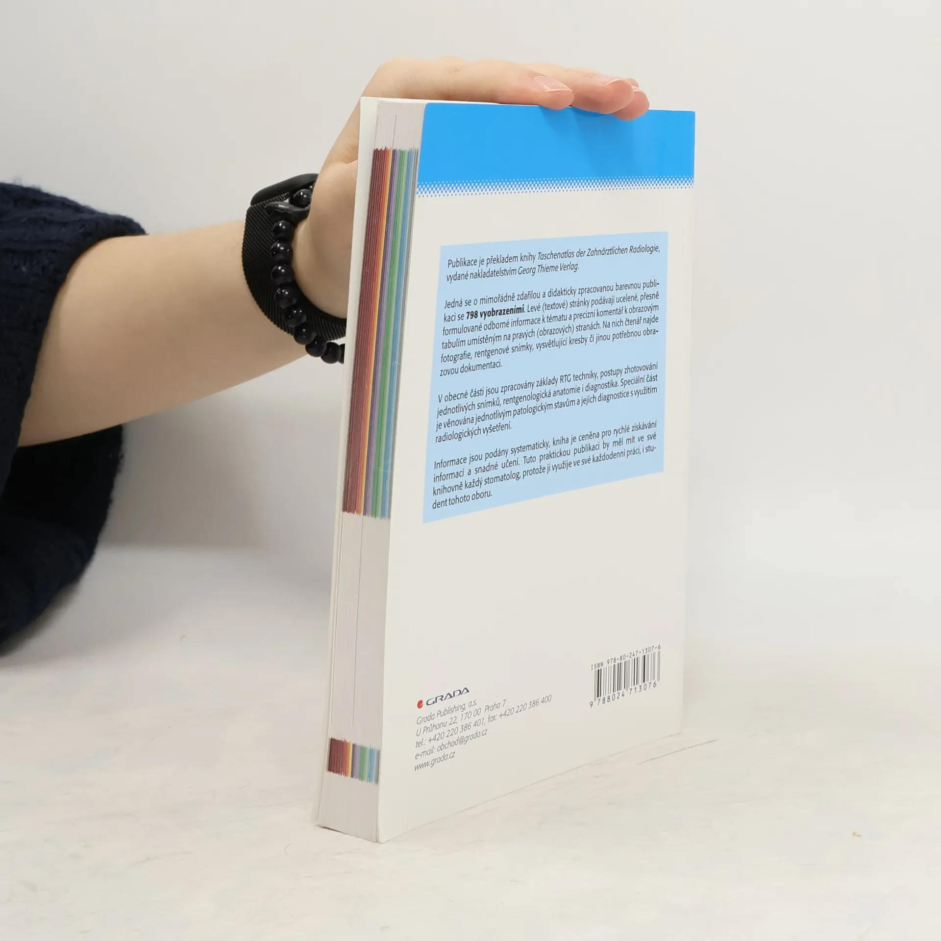Publikace je překladem knihy nakladatelství GEORG THIEME VERLAG Taschenatlas der Zahnärztlichen Radiologie. Jedná se o mimořádně zdařilou praktickou didaktickou barevnou publikaci se 798 vyobrazeními. Čtenář zde najde základy RTG techniky, RTG anatomii i diagnostiku. Informace jsou podány systematicky, naleznete zde strategii vyšetření, ale např. také tipy "jak na to". Levé stránky publikace jsou věnovány uceleným odborným informacím k tématu, přesně formulovaným a precizně komentovaným, vpravo pak najdete obrazové tabule s fotografiemi, RTG snímky či jinou potřebnou obrazovou dokumentací Kniha je ceněna pro rychlé získání informací a lehké učení. Kvalitě knihy napomáhá i zdařilý překlad od MUDr. Magdalény Koťové, Ph.D. Tuto praktickou publikaci by měl mít ve své ordinaci každý stomatolog, protože je opravdu využívána v jeho každodenní práci. Z toho vyplývá samozřejmě i naprostá potřebnost pro studenty tohoto oboru na lékařských fakultách.