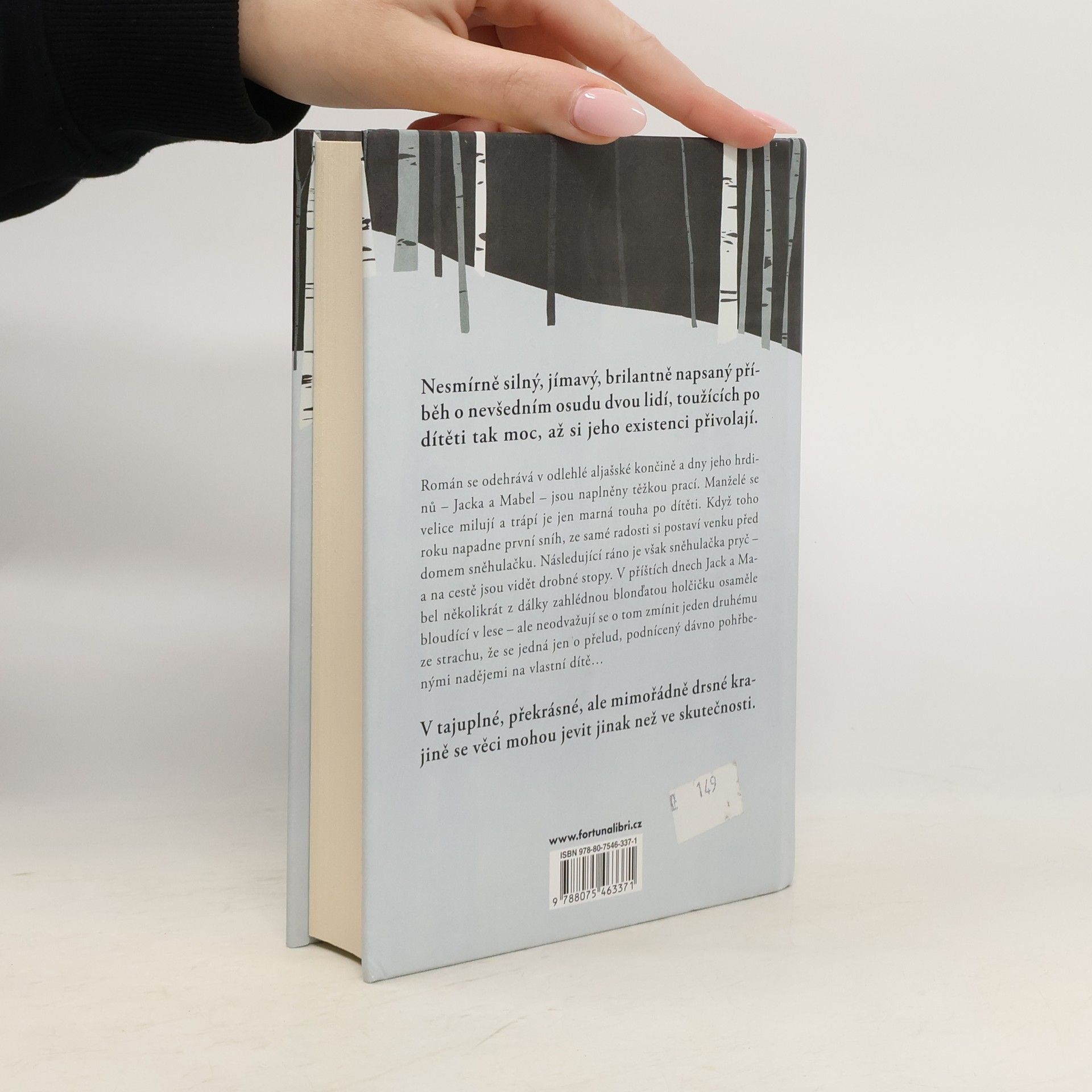 Nesmírně silný, jímavý, brilantně napsaný příběh o nevšedním osudu dvou lidí, toužících po dítěti tak moc, až si jeho existenci přivolají. Román se odehrává v odlehlé aljašské končině a dny jeho hrdinů – Jacka a Mabel – jsou naplněny těžkou prací. Manželé se velice milují a trápí je jen marná touha po dítěti. Když toho roku napadne první sníh, ze samé radosti si postaví venku před domem sněhulačku. Následující ráno je však sněhulačka pryč – a na cestě jsou vidět drobné stopy. V příštích dnech Jack a Mabel několikrát z dálky zahlédnou blonďatou holčičku osaměle bloudící v lese – ale neodvažují se o tom zmínit jeden druhému ze strachu, že se jedná jen o přelud, podnícený dávno pohřbenými nadějemi na vlastní dítě… V tajuplné, překrásné, ale mimořádně drsné krajině se věci mohou jevit jinak než ve skutečnosti.