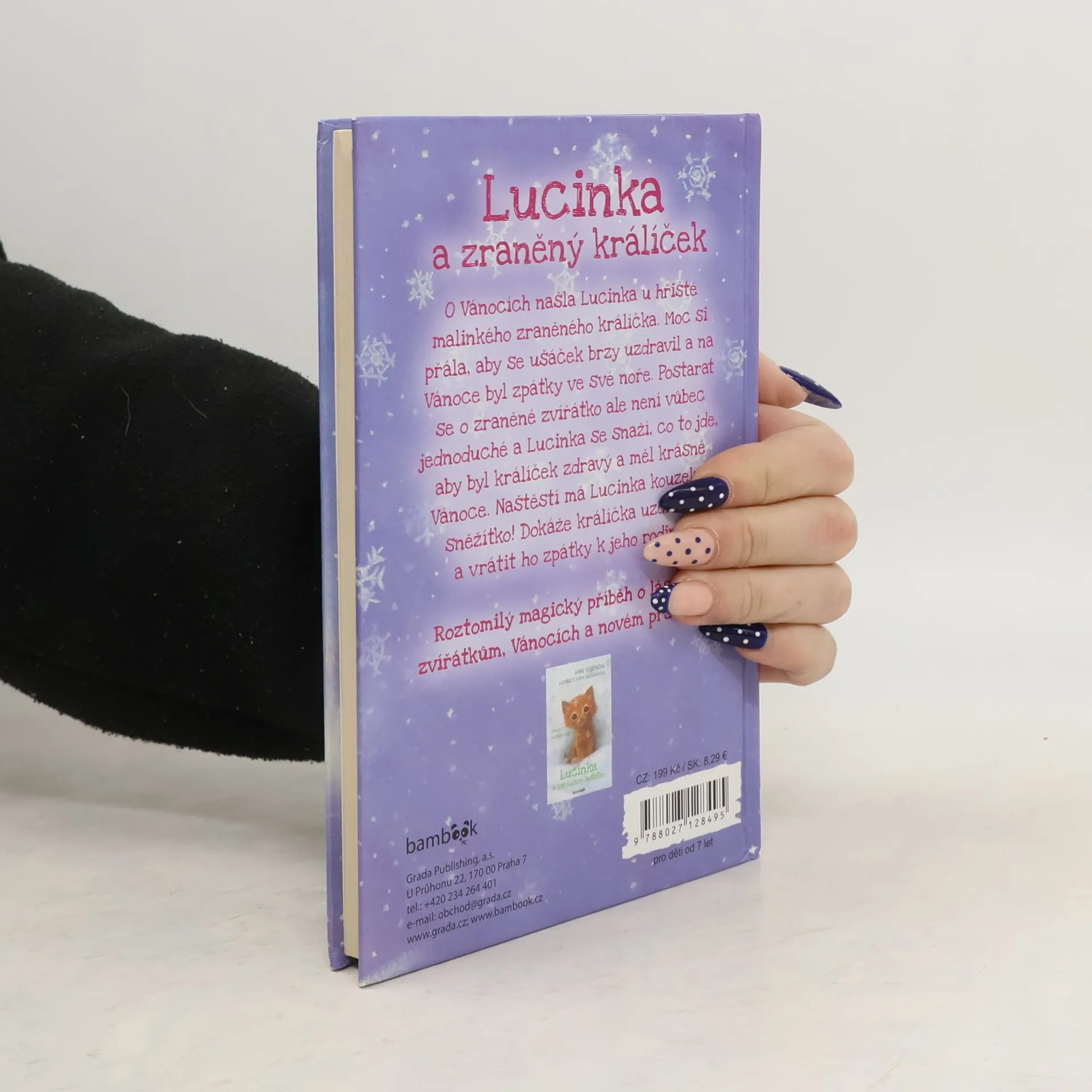 O Vánocích našla Lucinka u hřiště malinkého zraněného králíčka. Moc si přála, aby se ušáček brzy uzdravil a na Vánoce byl zpátky ve své noře. Postarat se o zraněné zvířátko ale není vůbec jednoduché a Lucinka se snaží ze všech sil. Naštěstí má kouzelné sněžítko! Dokáže králíčka uzdravit a vrátit ho zpátky k jeho rodině? Přečti si laskavý magický příběh o lásce ke zvířátkům, Vánocích a novém přátelství.