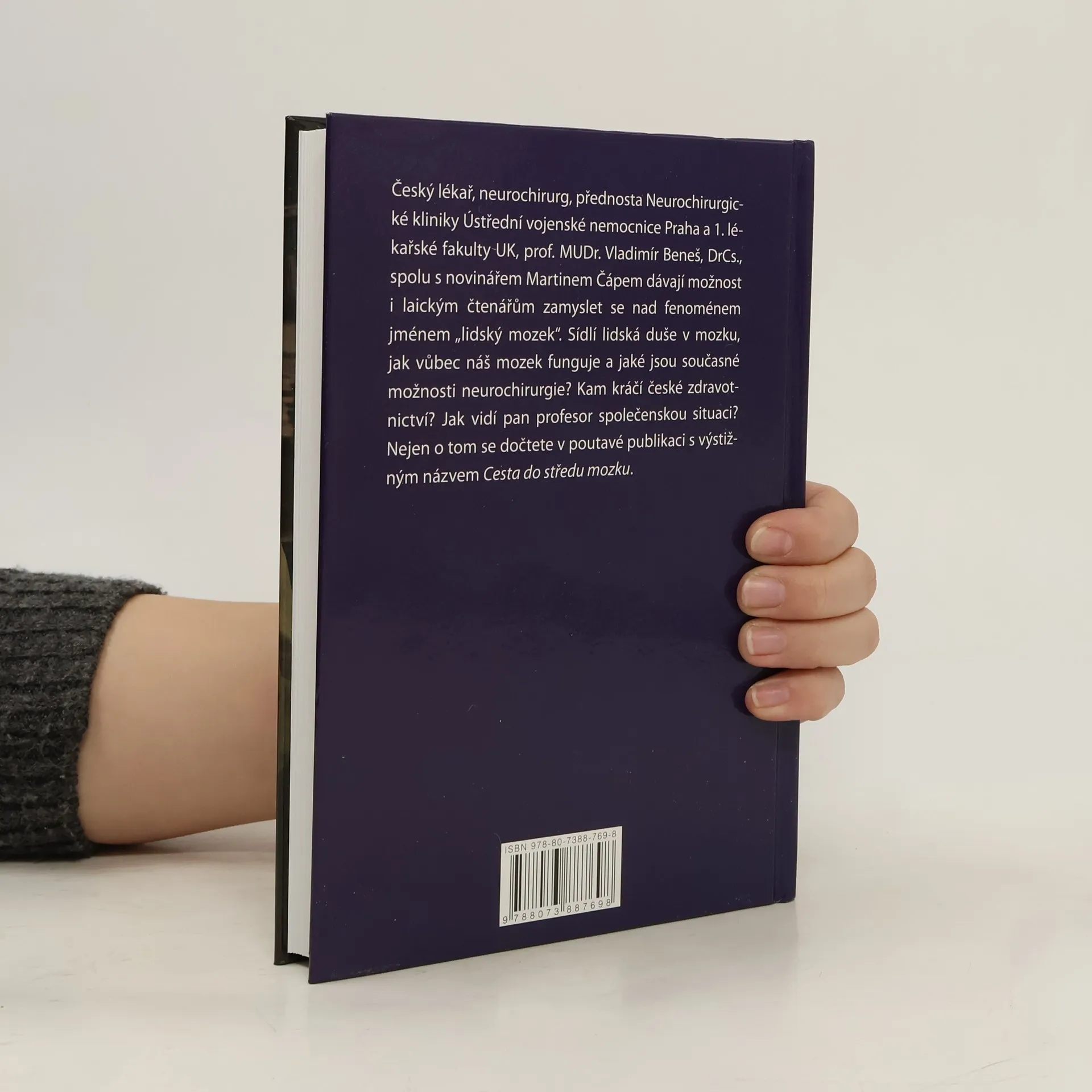 Jméno Plk. prof. MUDr. Vladimíra Beneše, DrSc. není třeba příliš představovat. Český lékař, neurochirurg, přednosta Neurochirurgické kliniky Ústřední vojenské nemocnice Praha a 1. Lékařské fakulty UK je velmi dobře znám po celém světě. Mimo jiné působí také ve funkci předsedy České neurochirurgické společnosti a prezidenta Evropské asociace neurochirurgických společnosti. Od roku 1998 zároveň vede subkatedru neurochirurgie na Institutu postgraduálního vzdělávání ve zdravotnictví (IPVZ). Spolu s novinářem Martinem Čápem dává MUDr. Beneš možnost i laickým čtenářům zamyslet se nad fenoménem jménem „lidský mozek“. Sídlí lidská duše v mozku, jak vůbec náš mozek funguje a jaké jsou současné možnosti neurochirurgie…? Nejen o tom se dočtete v poutavé publikaci s výstižným názvem Cesta do středu mozku.