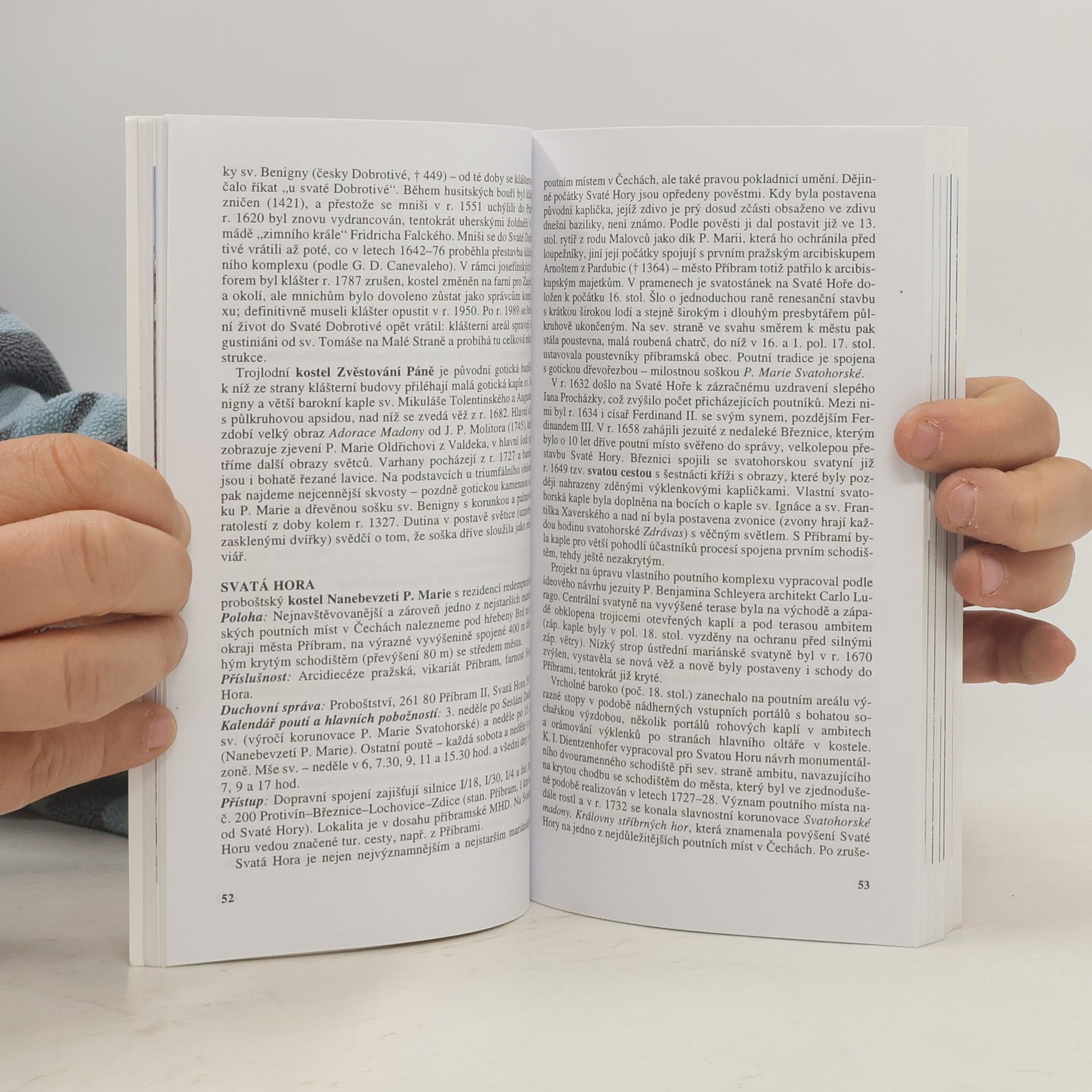 Po stručném úvodu o tradici i obnovení starých poutních míst následuje vlastní soupis lokalit. Začíná Prahou a v abecedním pořadí uvádí soupis míst, která souvisejí s náboženskými poutěmi. Pak následují střední, jižní, západní, severní a východní Čechy s obdobným uspořádáním - v každém kraji soupis v abecedním pořadí podle názvů jednotlivých míst. Hesla uvádějí stručnou historii a popis místa; to vše je ještě doplněno praktickými informacemi, které se týkají duchovní správy a přístupových cest. Na závěr textu je připojen stručný slovníček odborných pojmů. Celou knihu doprovázejí četné fotografie nejznámějších, ale i méně známých poutních míst.... celý text