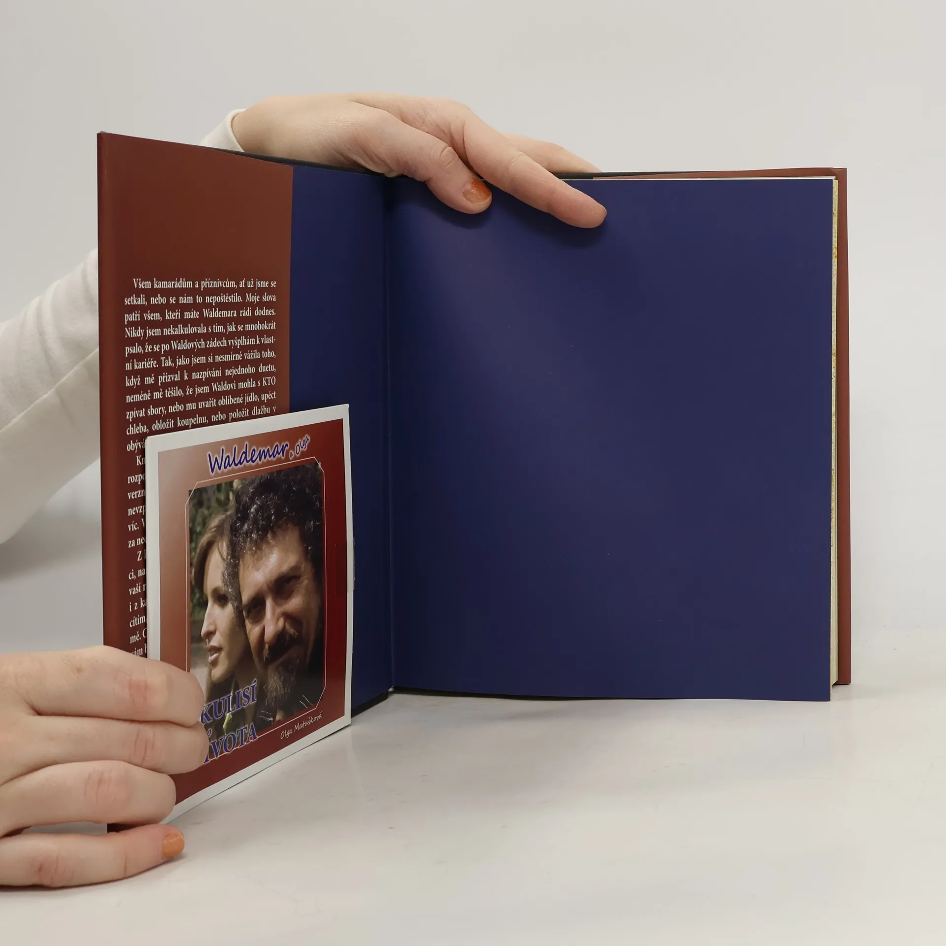 Zákulisí našeho života Nádherná zpověď a vzpomínka na životní a osudovou lásku. Během cesty zpět na Floridu, poté co v Praze pochovala svého milovaného manžela Waldemara Matušku, se autorce Olze Matuškové promítají v mysli zrození osudové lásky a příběhy, které nahlížejí do zákulisí jejich čtyřicetiletého společného života, v mnohých polohách dosud nezveřejněného. Vybavují se jí i okolnosti vzniku knihy koncem roku 2008, kdy ji Waldemar z čista jasna vyzval k okamžitému psaní. Jeho přání Olgu nepřekvapilo, protože dvojice autorů měla už za sebou velmi úspěšnou knihu "Tisíc mil, těch tisíc mil" . Zaskočila ji ale naléhavost, s jakou začali okamžitě psát. Asi po dvou měsících práce se však Waldemarův zdravotní stav začal horšit a 30. května 2009 odešel do věčných lovišť. Po rozloučení, které bylo pro Olgu neuvěřitelně bolestné, jí trvalo přes dva roky, než se mohla plně soustředit na dokončení jejich společného díla. A proto se k vám, teprve nyní, dostává Waldemarův pohled na kontroverzní skutečnosti, ke kterým se nikdy neměl možnost vyjádřit, a jeho myšlenky, které považoval za nutné sdělit. Ale nebyl by to Waldemar, aby nezavzpomínal i na zážitky příjemné, které v jeho životě určitě převažovaly. Kniha bezpochyby potěší všechny jeho příznivce. Kniha obsahuje také 14 písní na CD.