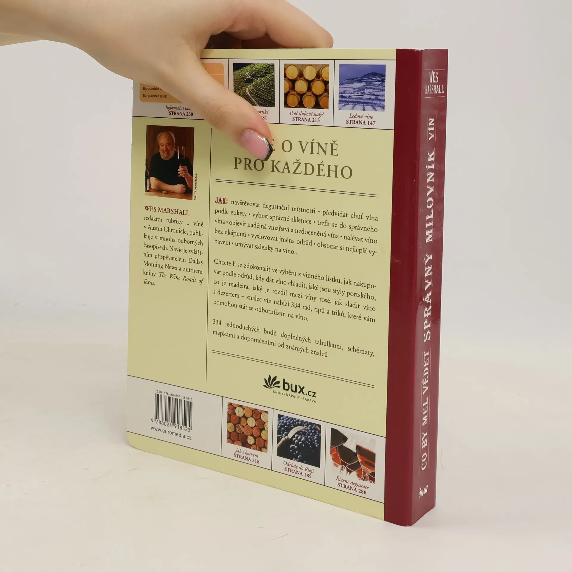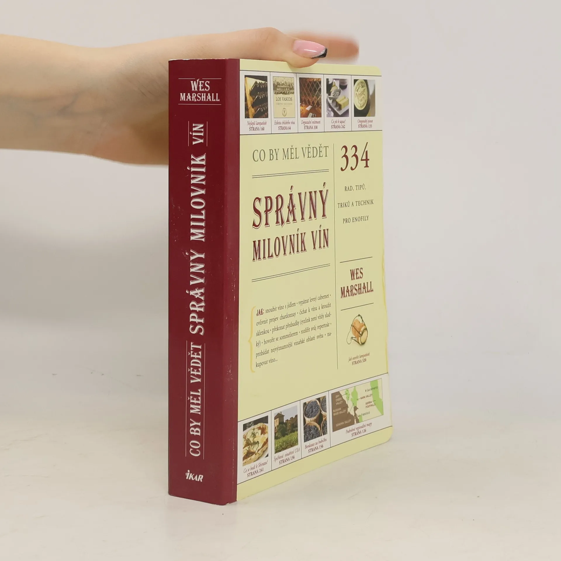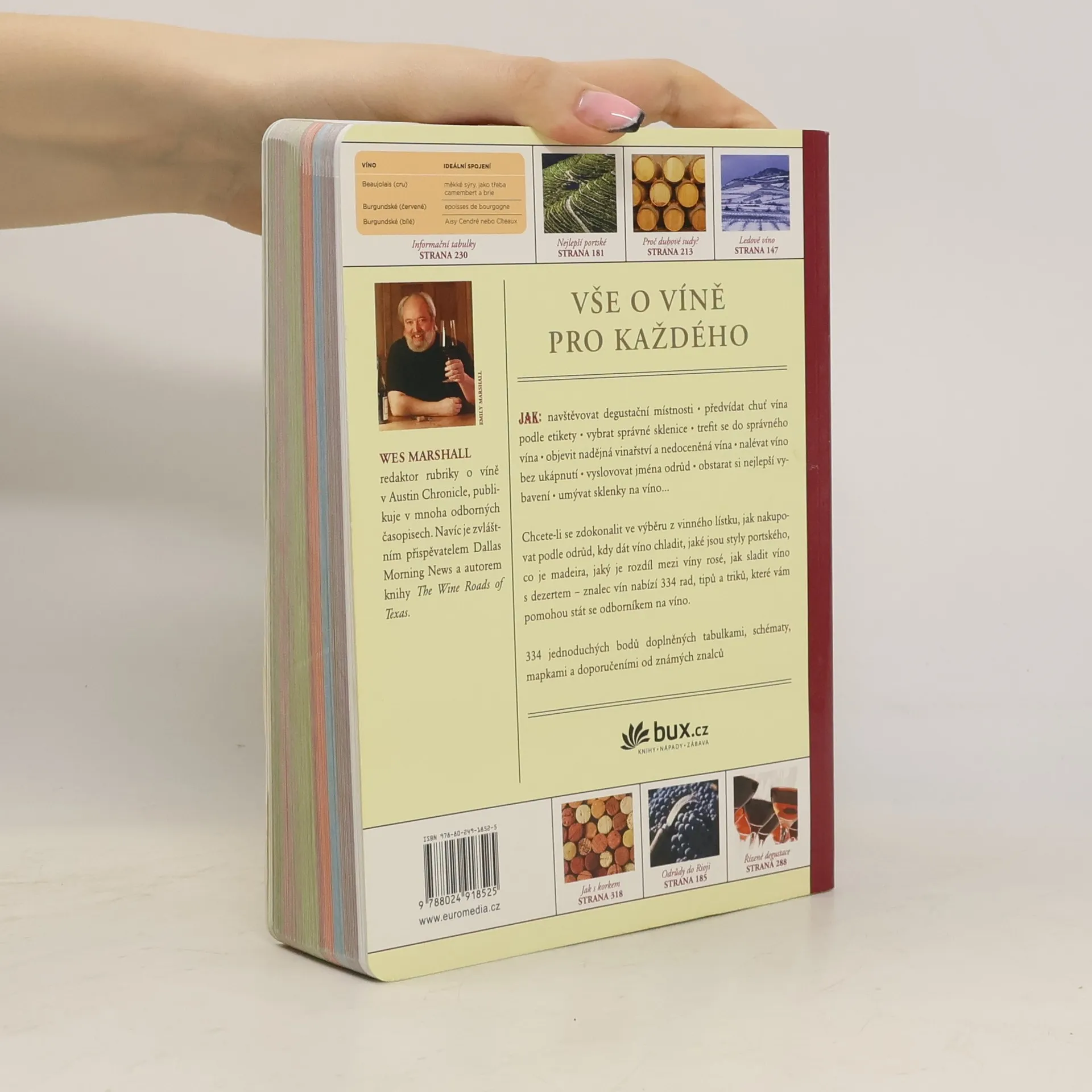Vše o víně pro každého. Chcete-li se zdokonalit ve výběru z vinného lístku, vědět, jak nakupovat podle odrůd, kdy dát víno chladit, jaké jsou styly portského, co je madeira, jaký je rozdíl mezi víny rosé, jak sladit víno s dezertem, co je degustace – znalec vín nabízí 334 rad, tipů a triků, které vám pomohou stát se odborníkem na víno. Výklad a odpovědi na všechny otázky kolem vína doplňují tabulky, schémata, mapky a doporučení od předních sommeliérů.
