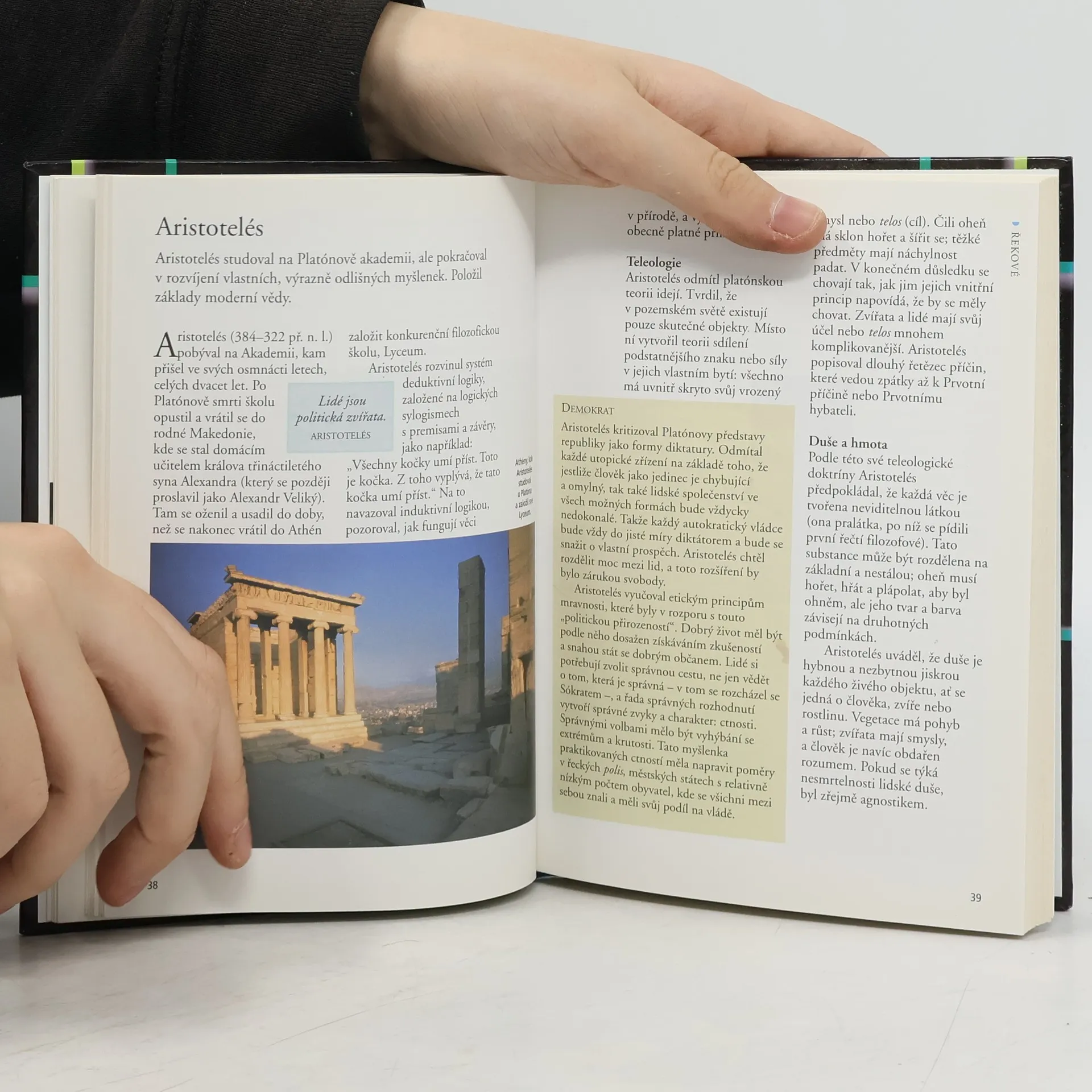 Přehledná encyklopedie dějin myšlenky, filozofie a náboženství od pravěku k postmodernismu. Kniha podává přehled dějin lidského myšlení, které souviselo s rozvojem filosofie a náboženství. Lidé se odnepaměti snažili zodpovědět otázky související se stvořením světa, smyslem života, jak by měli žít. S rozvojem civilizací si je začali formulovat a vytvářet svůj pohled na svět, filozofii, náboženství, etiku a duchovní směry. Kniha představuje stručné zachycení tohoto fascinujícího vývoje lidského ducha. Je doplněna barevnými fotografiemi, krátkými biografiemi a citáty. Připojen stručný glosář, který vysvětluje některé pojmy osažené v textu.