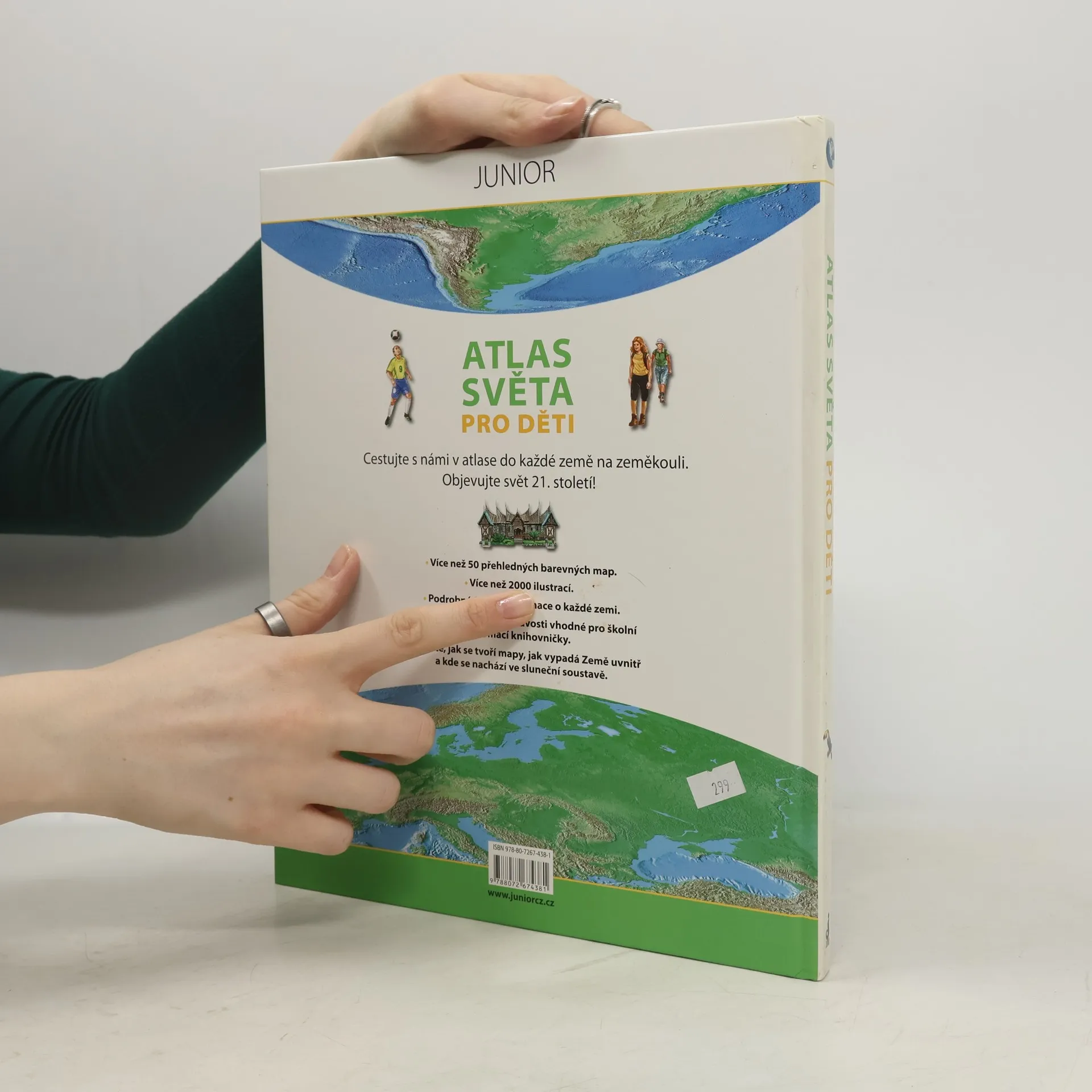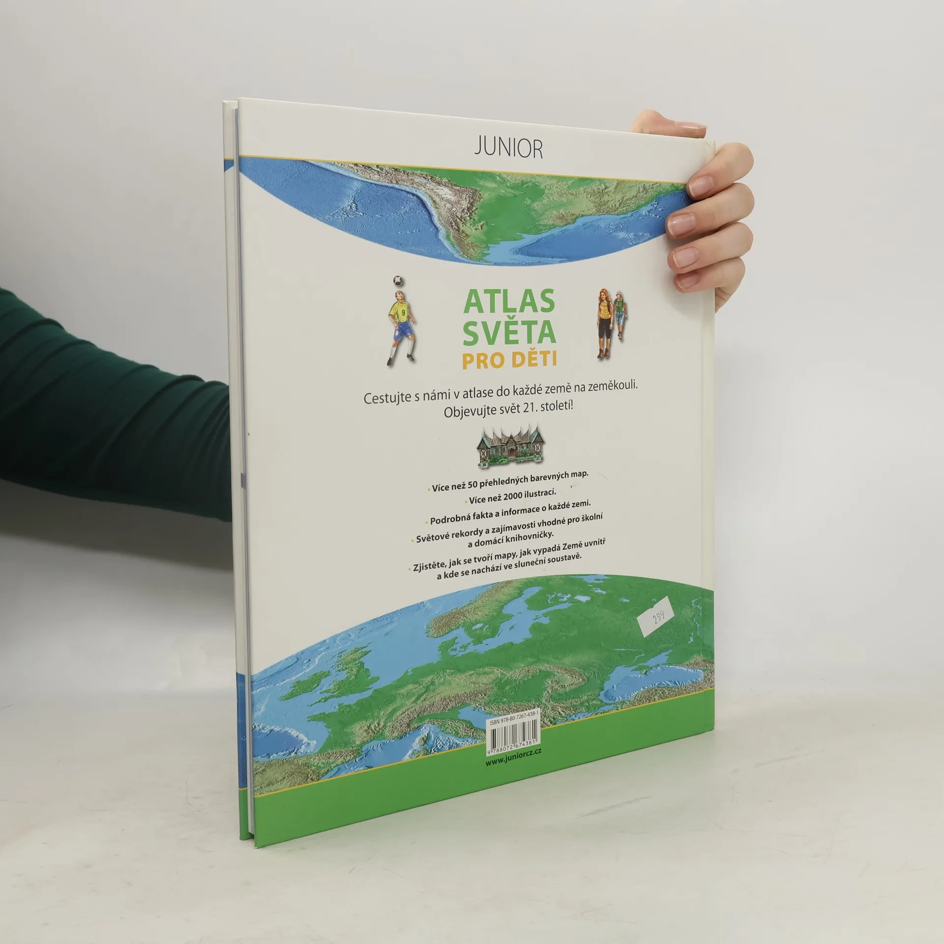 Cestujte s námi v atlase do každé země na zeměkouli. Objevujte svět 21. století! V knize na vás čeká ? Více než 50 přehledných barevných map. ? Více než 2000 ilustrací. ? Podrobná fakta a informace o každé krajině. ? Světové rekordy a zajímavosti vhodné pro školské a domácí knihovničky. ? Zjistěte jak se tvoří mapy, jak vypadá Země uvnitř a kde se nachází v Sluneční soustavě.