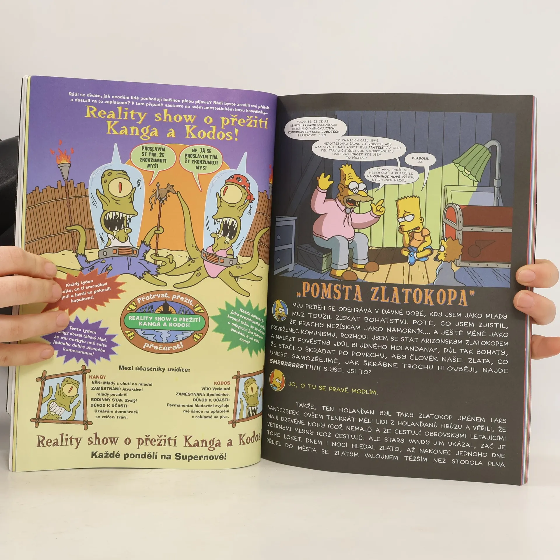 Další kniha ze světa nejslavnější žluté rodiny! Tenhle díl je z řady, začínající Nervy v kýblu, z řady, která se od klasických Simpsonů liší nejen komediálně-hororovým nádechem, ale i tím, že se na něm podílí lidé mimo simpsonovskou stáj, obvykle komiksové celebrity. V tomhle případě do Springfieldu zavítal Geof Darrow (Hard Boiled), Sergio Aragones (Groo), Jill Thompsonová (Beast of Burden), Doug TenNapel (Neverhood, Earthworm Jim), Chuck Dixon (Storming Paradise), Peter Kuper (Proměna) a další!