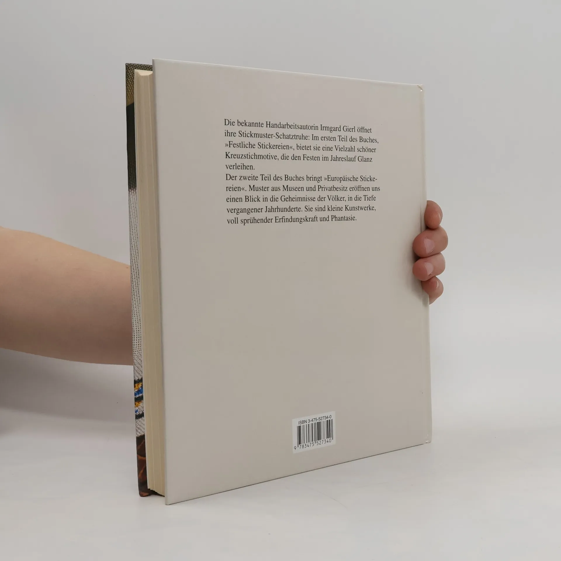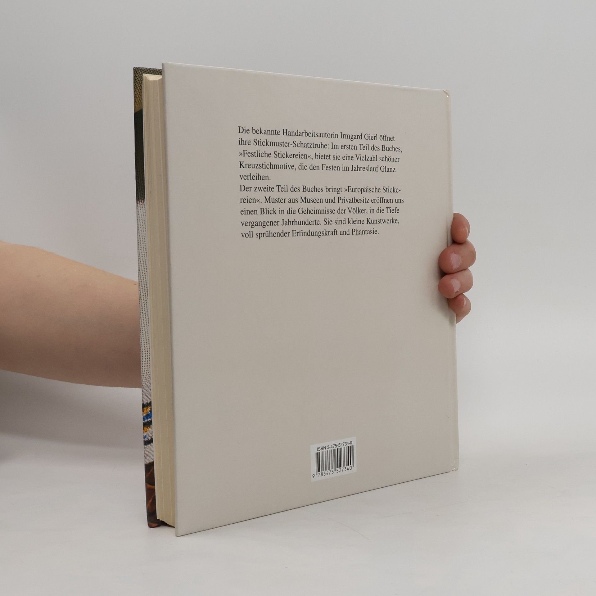Die bekannte Handarbeitsautorin Irmgard Gierl öffnet ihre Stickmuster-Schatztruhe: Im ersten Teil des Buches, Festliche Stickereien, präsentiert sie eine Vielzahl schöner Kreuzstichmotive, die den Festen des Jahres Glanz verleihen. Der Zweite Teil bringt Europäische Stickereien: Muster aus Museen und Privatbesitz gewähren uns einen Blick in volkstümliche Kunstfertigkeiten und vergangene Jahrhunderte. Es sind kleine Kunstwerke, voll sprühender Erfindungskraft und Fantasie.
