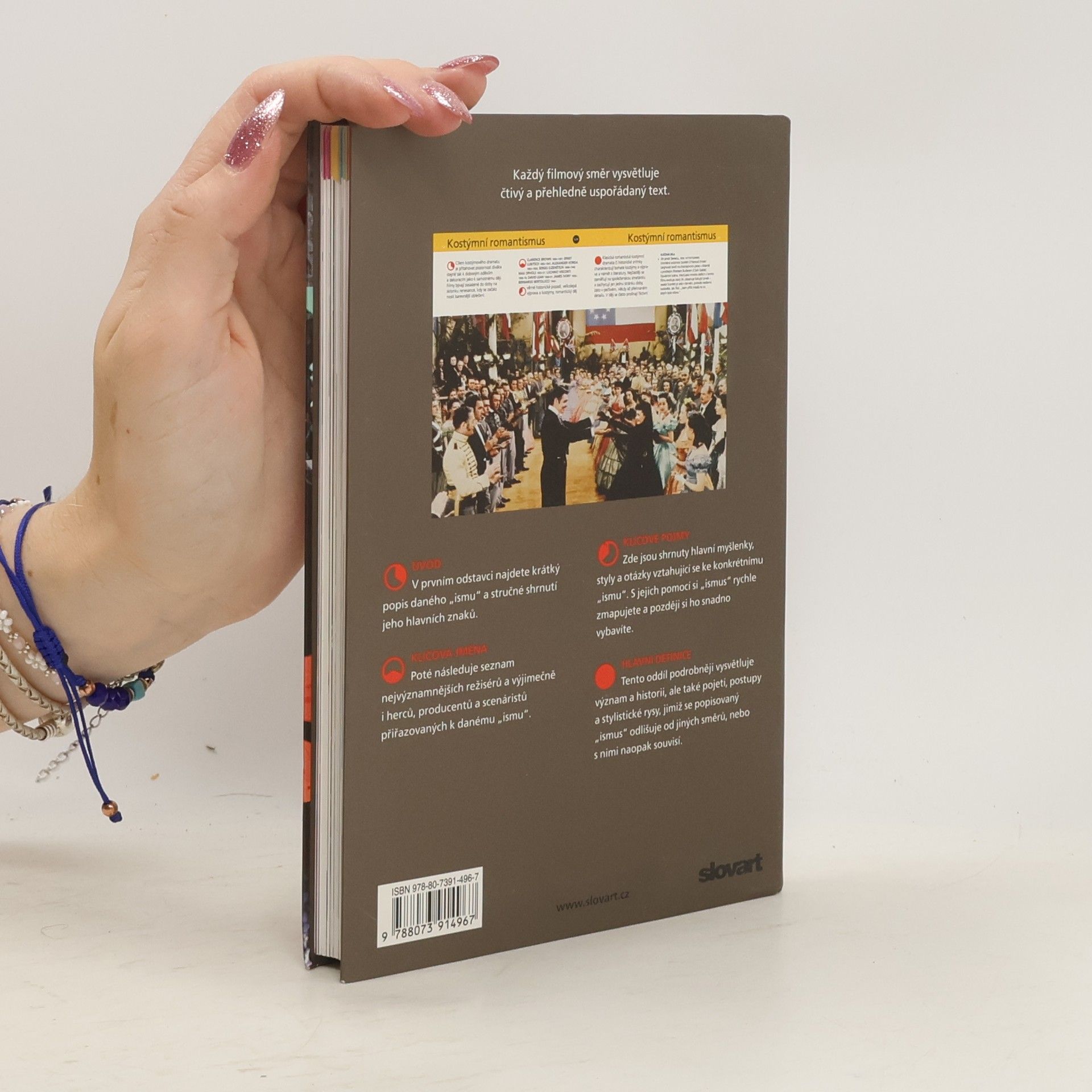 Text, který poutavou formou představuje slavné filmy a režiséry, je roztříděný do význačných "ismů", jež udávaly směry vývoje filmové tvorby. Publikace pokrývá celou historii kinematografie, od klasických děl němé éry přes zlatý věk Hollywoodu a francouzskou novou vlnu až po současný rozmach asijského minimalismu.
