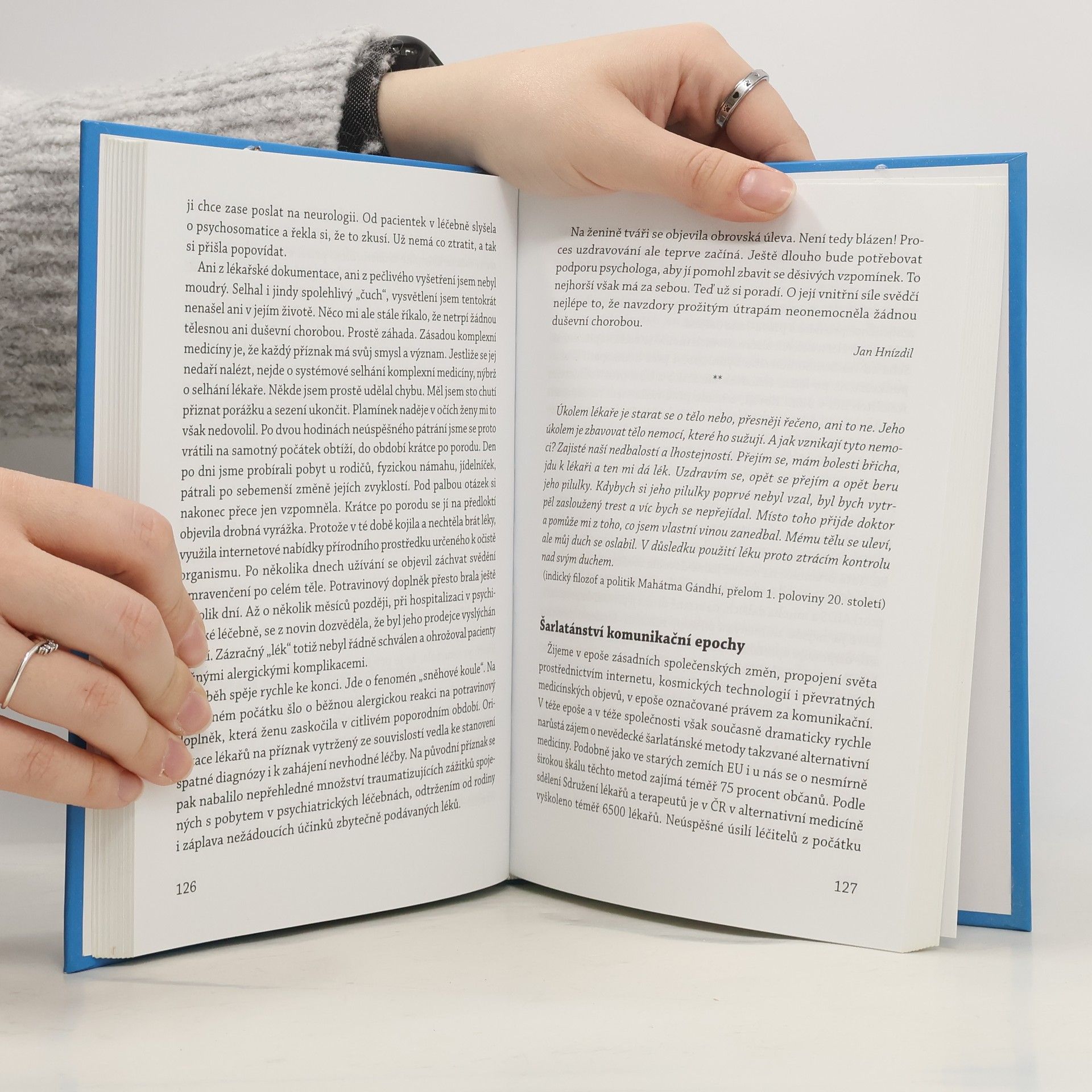 aneb Hippokratova noční můra Současná situace lékařství jako oboru zabývajícího se lidskými chorobami a zdravotnictví jako státní instituce organizující péči o zdraví občanů, je mírně řečeno neuspokojivá. Důvodem jsou mocenské, ekonomické a politické zájmy, které tento medicínsko-zdravotnický komplex dokonale ovládly. Věda o chorobách ruku v ruce se zdravotnickou technikou a farmakologií vytvořily svébytný systém řízený státní správou a pojišťovnami podle pravidel, které stále méně vyhovují původnímu účelu pečovat o zdraví občanů. Místo toho je manipuluje do role potenciálních nebo skutečných pacientů a stále více z nich činí spotřebitele služeb, které přinášejí zisky mocným obchodním řetězcům a vlivným podnikatelským skupinám. Vzniká tak povážlivý paradox. Zatímco dříve člověk pečoval o svoje zdraví a kolem tohoto problému organizoval veškeré aktivity, nyní se systém péče o zdraví stal rozhodující hybnou silou, která kolem sebe a k obrazu svému organizuje chování občanů. Tato skutečnost je vůdčí ideou knihy příběhů a esejů, které se týkají každého, kdo překročil práh nějakého zdravotnického zařízení.