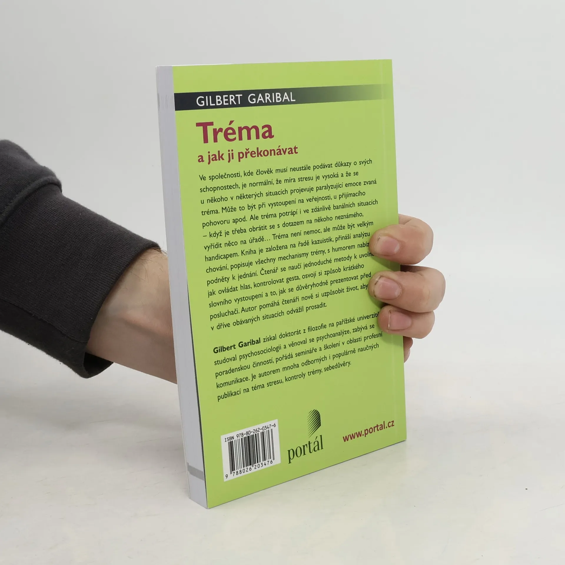 Ve společnosti, kde člověk musí neustále podávat důkazy o svých schopnostech, je normální, že míra stresu je vysoká a že se u někoho v některých situacích projevuje paralyzující emoce zvaná tréma. Může to být při vystoupení na veřejnosti, u přijímacího pohovoru apod. Ale tréma někoho trápí i ve zdánlivě banálních situacích – když je třeba obrátit se s dotazem na někoho neznámého, vyřídit něco na úřadě… Tréma není nemoc, ale může být velkým handicapem. Kniha, přehledně strukturovaný rádce, je založena na bohaté kazuistice, přináší analýzu chování, popisuje všechny mechanismy trémy, s humorem nabízí podněty k jednání. Čtenář se naučí jednoduché metody k uvolnění, jak ovládat hlas, kontrolovat gesta, osvojí si způsob krátkého slovního vystoupení a to, jak se důvěryhodně prezentovat před posluchači. Autor pomáhá čtenáři nově si uzpůsobit život, aby se v dříve obávaných situacích odvážil prosadit. Gilbert Garibal získal doktorát z filozofie na pařížské univerzitě, studoval psychosociologii a věnoval se psychoanalýze, zabývá se poradenskou činností, pořádá semináře a školení v oblasti profesní komunikace. Je autorem mnoha studií na téma stresu, kontroly trémy, sebedůvěry a desítky publikací jak odborných, tak populárně naučných (např. o emocích, transakční analýze Erika Berna).
