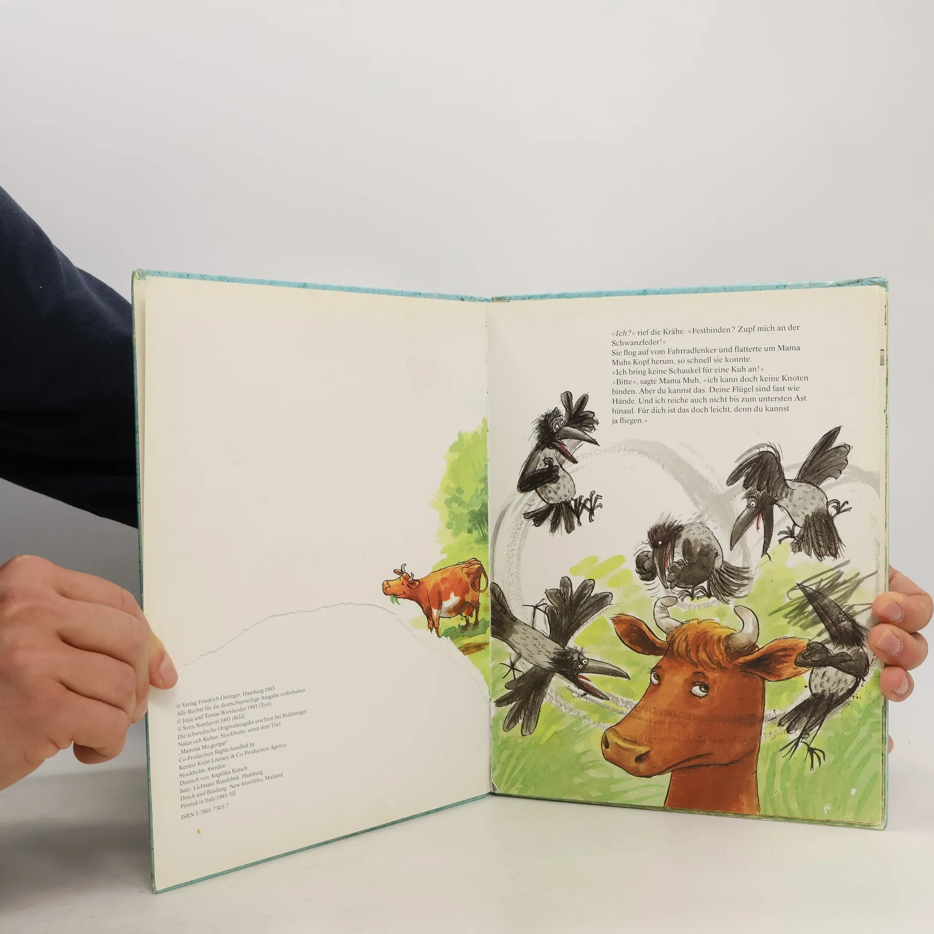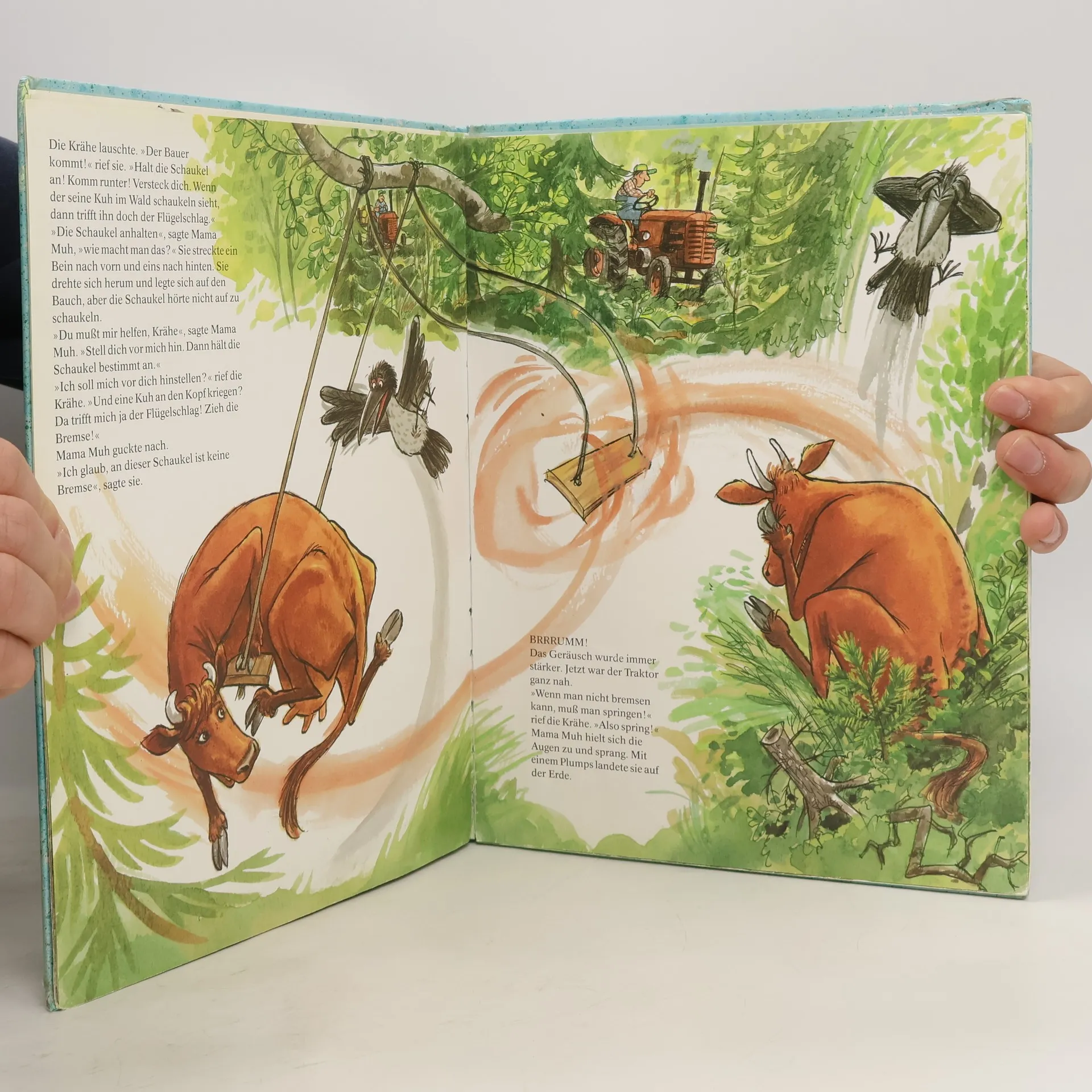 Immer nur rumstehen und kauen und in die Gegend glotzen, das geht ja auf keine Kuhhaut! Auch wenn die Sonne scheint, die Vögel zwitschern, die Fliegen surren und die anderen Kühe alle auf der Weide grasen. Mama Muh hat Höheres im Sinn: Mama Muh will schaukeln. Schaukeln, dass ihr der Wind um die Ohren pfeift. Aber das ist gar nicht so einfach - wenn man eine Kuh ist...