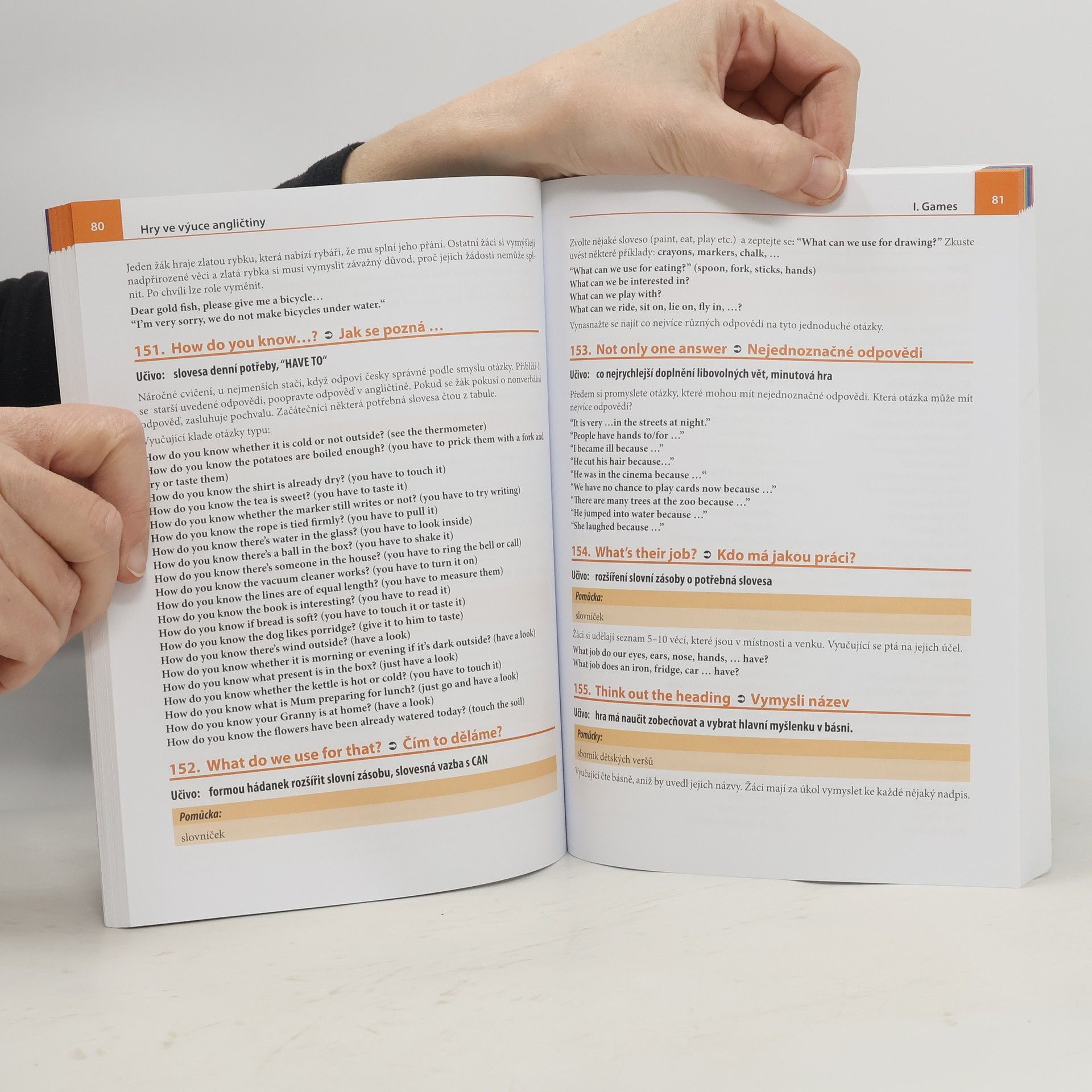 Učte angličtinu moderně, zábavně a zajímavě!!! Publikace usnadní a zpestří práci všem učitelům angličtiny na základních, středních i jazykových školách, plně je lze doporučit i budoucím učitelům angličtiny. Zařazení jazykových her do výuky přispěje k praktickému ovládnutí jazyka. Jazykové hry odstraňují potřebu překladu z mateřštiny do cizího jazyka a vytváří základy myšlení v cizím jazyce. Kniha obsahuje: - jazykové hry - logické hádanky - scénáře pohádek - tematické slovníky použitelné ve hrách Pomocí hry lze při výuce např.: - procvičit slovní zásobu - upevnit znalosti z mluvnice - prohlubovat porozumění mluvenému slovu - rozvíjet schopnost samostatného hovoru… Hry jsou rozděleny podle jazykových úrovní, což nasměruje učitele při výběru vhodné obtížnosti.