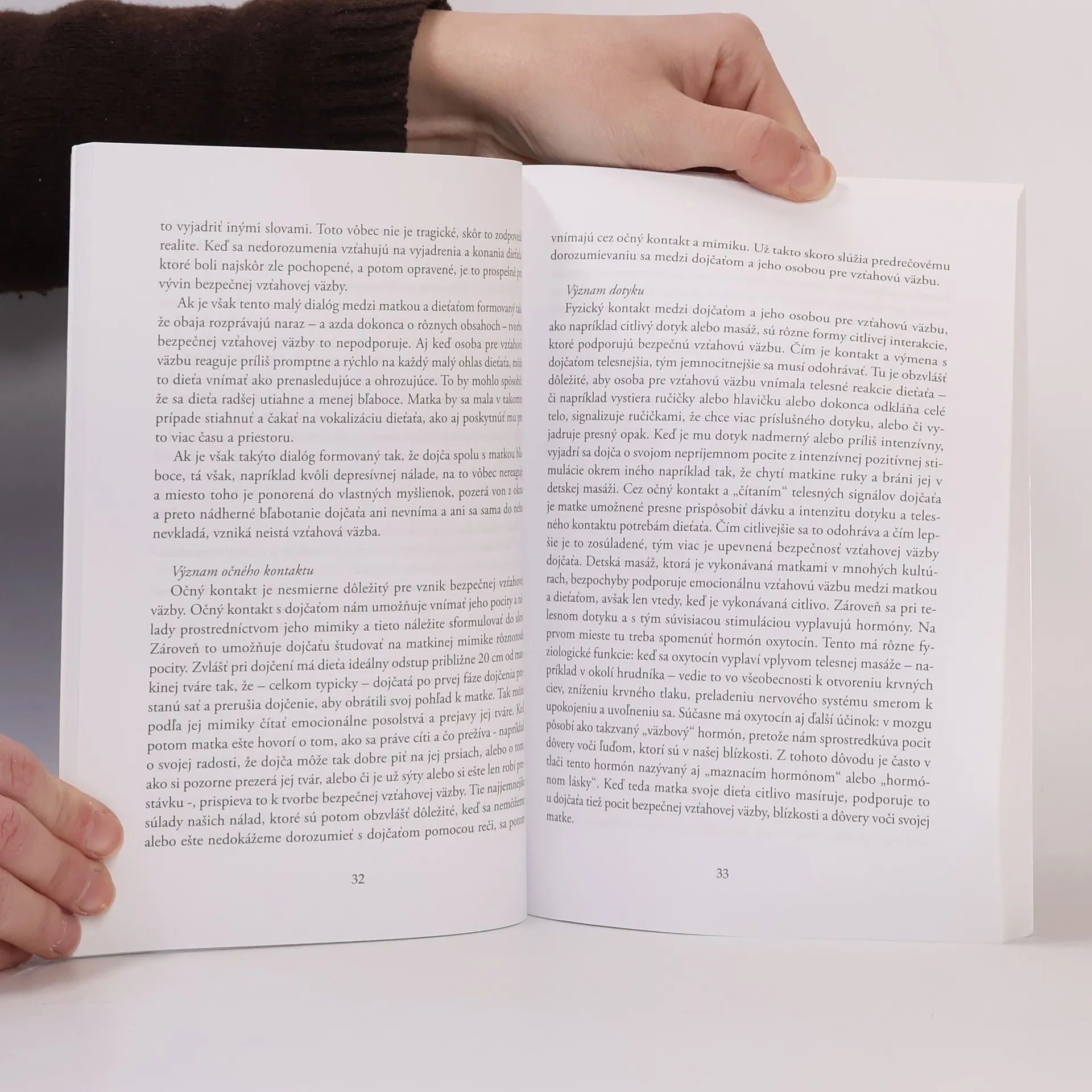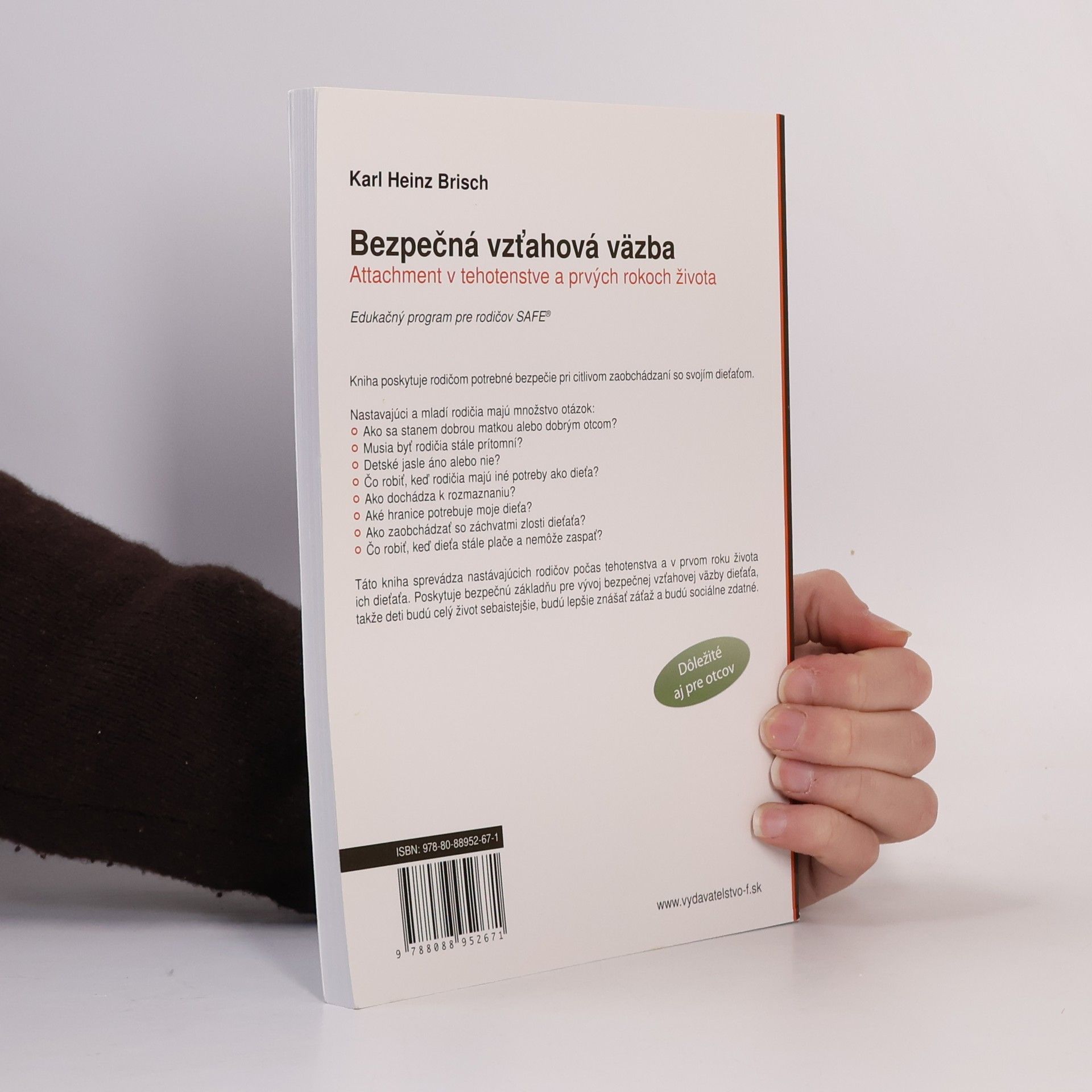 Kniha poskytuje rodičom potrebné bezpečie pri citlivom zaobchádzaní so svojím dieťaťom. Nastávajúci a mladí rodičia majú množstvo otázok: Ako sa stanem dobrou matkou alebo dobrým otcom? Musia byť dobrí rodičia stále prítomní? Detské jasle áno alebo nie? Čo robiť, keď rodičia majú iné potreby ako dieťa? Ako predchádzať rozmaznaniu? Aké hranice potrebuje moje dieťa? Ako zaobchádzať so záchvatmi zlosti dieťaťa? Čo robiť, keď dieťa stále plače a nemôže zaspať? Táto kniha sprevádza nastávajúcich rodičov počas tehotenstva a v prvom roku života ich dieťaťa. Poskytuje bezpečnú základňu pre vývoj bezpečnej vzťahovej väzby dieťaťa, takže deti budú celý život sebaistejši, budú lepšie znášať záťaž a budú sociálen zdatné.