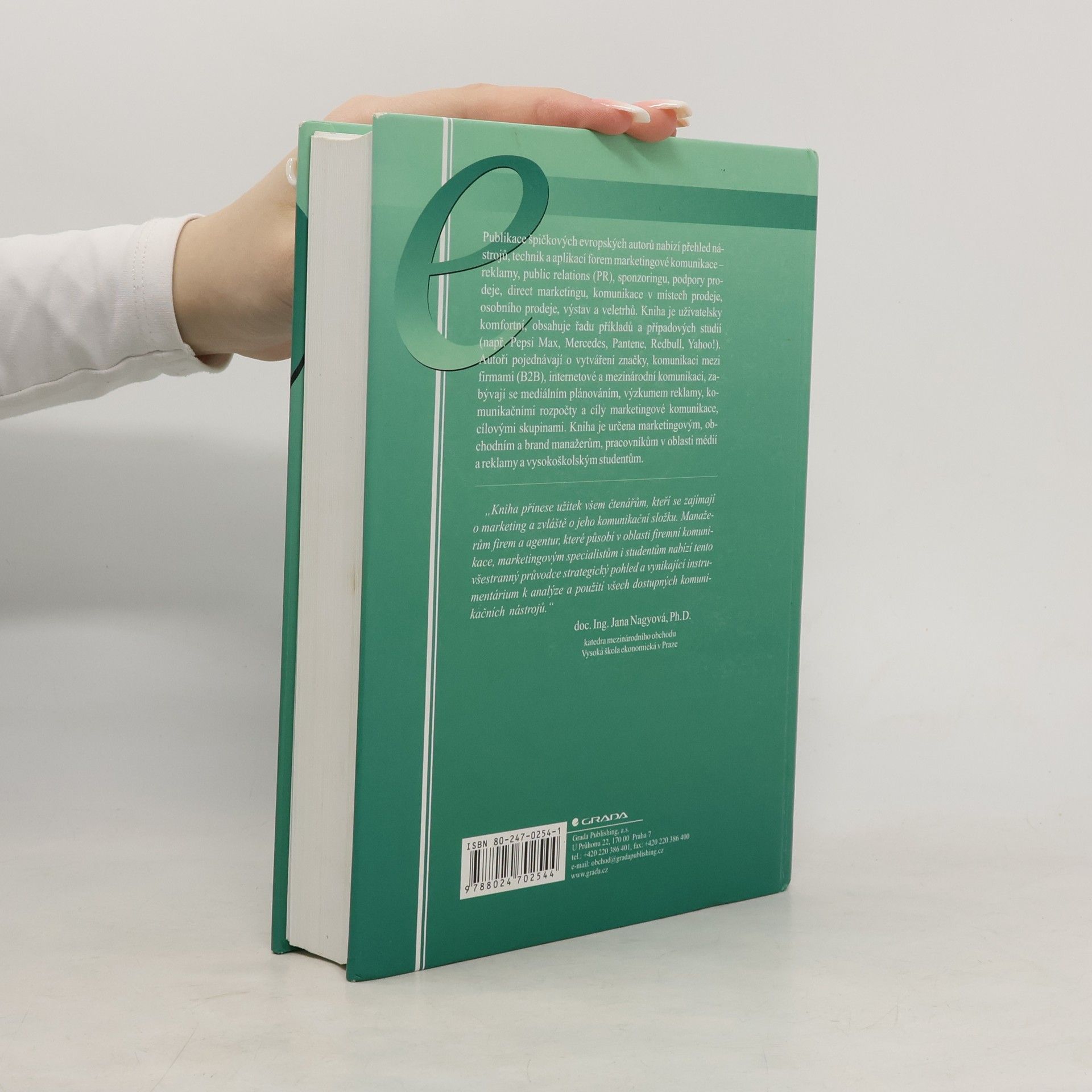 Publikace špičkových evropských autorů nabízí přehled nástrojů, technik a aplikací forem marketingové komunikace. Kniha obsahuje řadu příkladů a případových studií, autoři pojednávají o vytváření značky, komunikaci mezi firmami, internetové a mezinárodní komunikaci, plánováním, výzkumem. Kniha je určena marketingovým, obchodním a brand manažerům, pracovníkům v oblasti reklamy a vysokoškolským studentům.