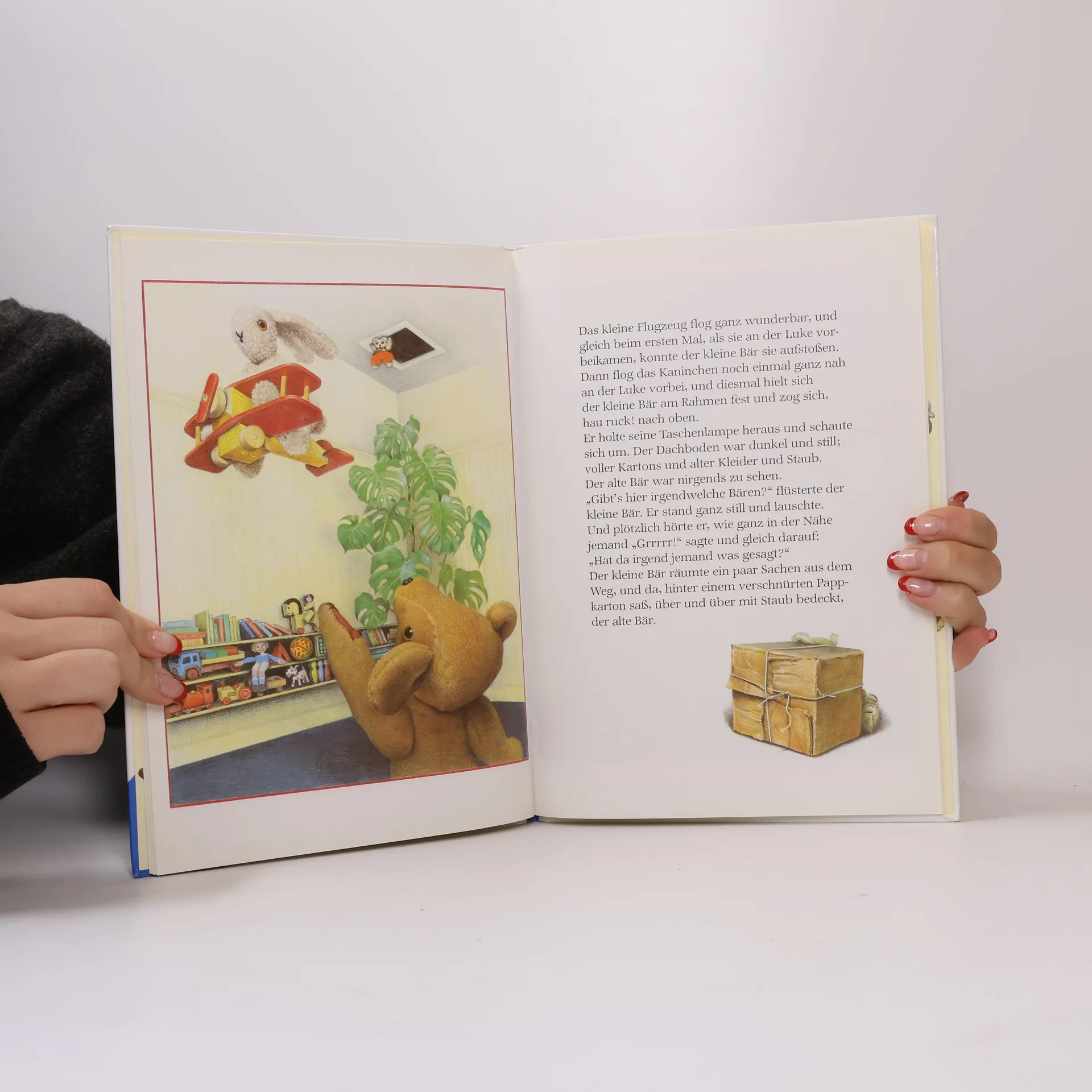 Der alte, abgewetzte Bär wurde auf den Speicher verbannt, aber seine Freunde, die anderen Spielzeugtiere, haben ihn nicht vergessen und beschliessen ihn zurückzuholen. (ab 3).