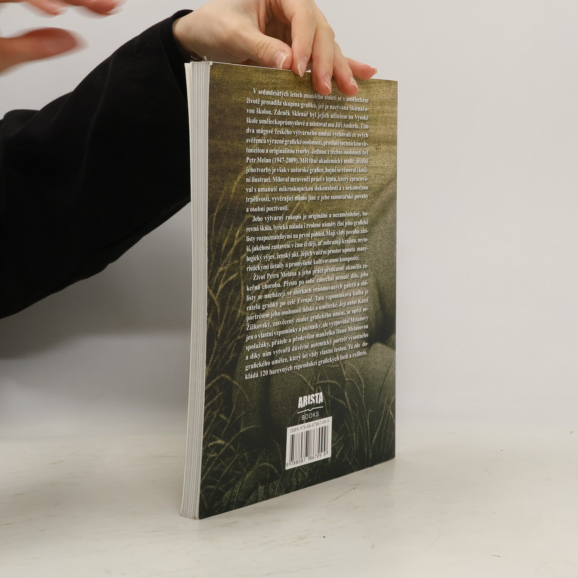 V sedmdesátých letech minulého století se v uměleckém životě prosadila skupina grafiků, nazývaná Sklenářovou školou, jejíž učitel Zdeněk Sklenář a asistent Jiří Anderle vychovali výrazné osobnosti českého výtvarného umění. Jednou z nich byl Petr Melan (1947-2009), akademický malíř, jehož hlavní zaměření spočívalo v autorské grafice a knižní ilustraci. Melan byl známý svou precizní prací v leptu, kterou prováděl s mikroskopickou dokonalostí a trpělivostí, odrážející jeho samotářskou povahu a osobní poctivost. Jeho výtvarný styl je originální a nezaměnitelný, přičemž barevná škála, lyrická nálada a zvolené náměty činí jeho grafické listy snadno rozpoznatelnými. Vždy mají charakter zátiší a zachycují okamžiky v čase, ať už zobrazují krajinu, mytologické výjevy či ženské akty. Vnitřní prostor jeho děl je obohacen manýristickými detaily a promyšlenou kompozicí. Petr Melan zemřel na zákeřnou chorobu, ale zanechal po sobě významné dílo, jehož listy jsou součástí sbírek renomovaných galerií a sběratelů po celé Evropě. Tato vzpomínková kniha, autorství Karla Žižkovského, vytváří autentický portrét Melana, opírající se o vzpomínky jeho přátel, spolužáků a manželky Dany Melanové, a obsahuje 120 barevných reprodukcí jeho grafických listů a exlibris.
