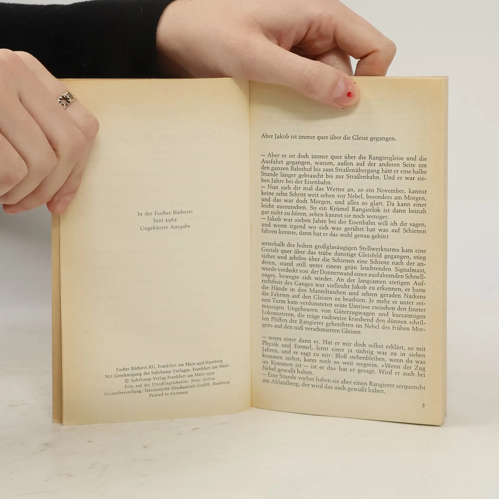 Uwe Johnsons erster Roman ist aufgrund seiner komplexen Erzählstruktur eine Herausforderung und thematisiert die deutsche Teilung, was den Autor aus Ostdeutschland bekannt machte. Johnsons Mutter arbeitete bei der Reichsbahn, und nach ihrer Flucht konnte er weiterhin in der Bahnkantine essen, was ihm Einblicke in die Arbeitswelt gab. Zwischen Februar und Dezember 1958 schrieb er das Buch, das ursprünglich „Guten Tag, Jakob“ heißen sollte. Die Geschichte folgt Jakob Abs, einem 28-jährigen Beamten der DDR-Reichsbahn in Dresden, der im November 1956 auf dem Rangiergelände von einer Lok überfahren wird. Ob sein Tod ein Unfall, Selbstmord oder ein geplanter Mord ist, bleibt unklar. Jakob, der loyal zur DDR ist, wird von der Spionageabwehr überwacht, seit seine Mutter und seine Freundin Gesine in den Westen geflohen sind. Die Handlung spielt in einer kurzen Tauwetter-Periode nach dem Ungarn-Aufstand, in der Jakob die sowjetischen Militärtransporte bemerkt. Gesine, unter Druck von Abwehr-Hauptmann Rohlfs, besucht ihren Vater und Jakob. Rohlfs verhaftet den regimekritischen Dr. Blach, während er das Paar beobachtet. Jakob reist in den Westen, kehrt jedoch freiwillig zurück und stirbt am selben Tag. Die Erzählweise ist nicht linear, sondern analytisch, mit Gesprächen und inneren Monologen, die dem Leser die Rekonstruktion von Jakobs Leben ermöglichen. Die Sprache spiegelt plattdeutsche Einflüsse wider und verleiht dem Werk eine über