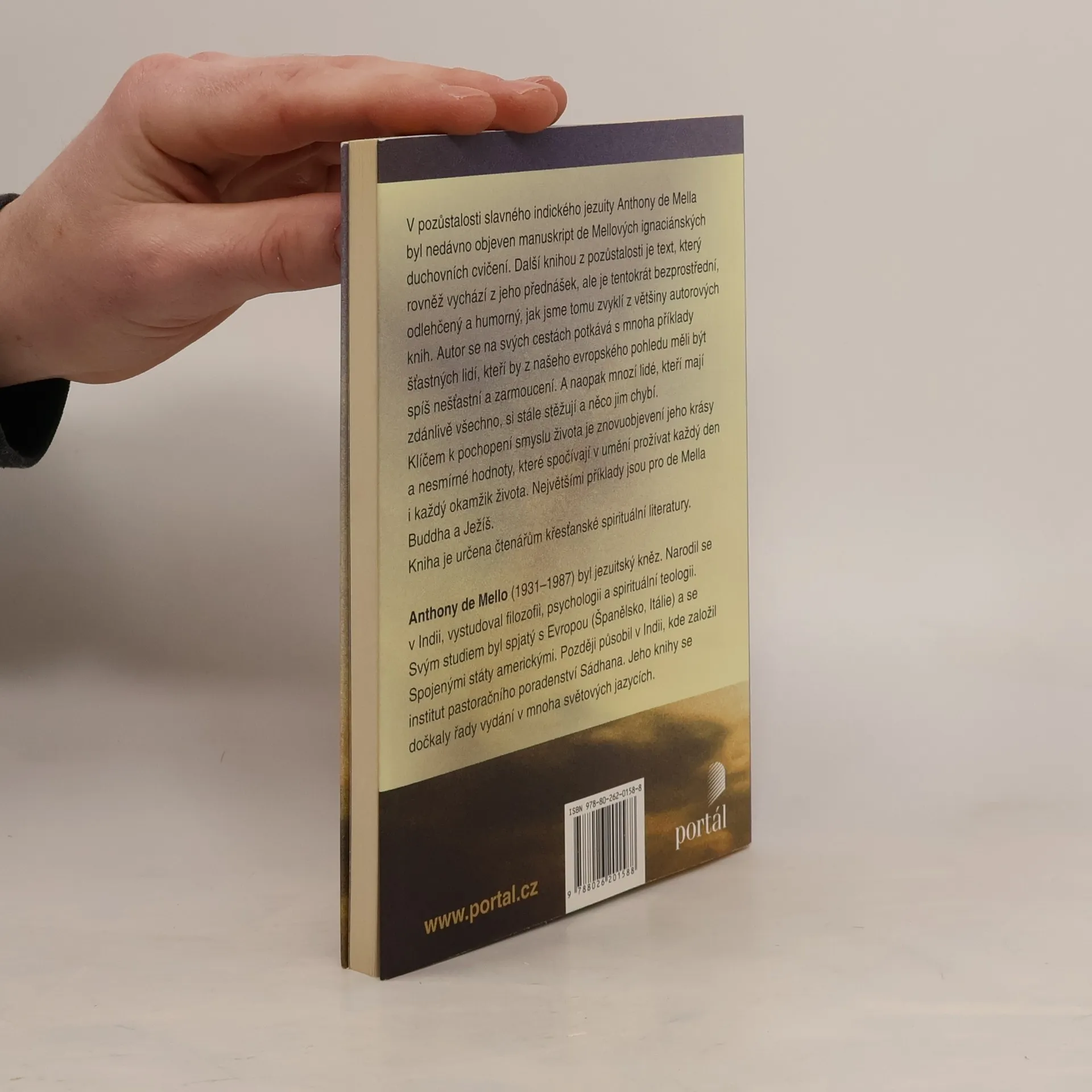 V pozůstalosti slavného indického jezuity Anthony de Mella byla nedávno objevena manuskript de Mellových ignaciánských duchovních cvičení. Dalším knihou z pozůstalosti je text, který rovněž vychází z jeho přednášek, ale je tentokrát bezprostřední, odlehčený a humorný, jak jsme tomu zvyklí z většiny autorových knih. Autor se na svých cestách potkává s mnoha příklady šťastných lidí, kteří by z našeho evropského pohledu měli být spíš nešťastní a zarmoucení. A naopak mnozí lidé, kteří mají zdánlivě všechno, si stále stěžují a něco jim chybí. Klíčem k pochopení smyslu života je znovuobjevení jeho krásy a nesmírné hodnoty, které spočívají v umění prožívat každý den i každý okamžik života naplněni Bohem. Jedním z vrcholných příkladů jsou pro de Mella Buddha a Ježíš. Kniha je určena čtenářům křesťanské spirituální literatury.